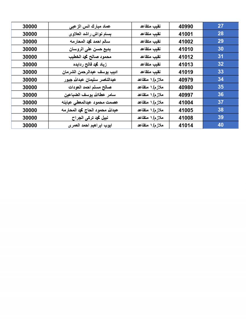 أسماء الضباط وضباط الصف والأفراد المستفيدين لدفعة شهر أيلول 2023