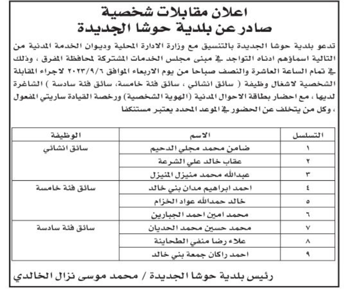 عاجل /مدعوون لإجراء مقابلات شخصية (أسماء)