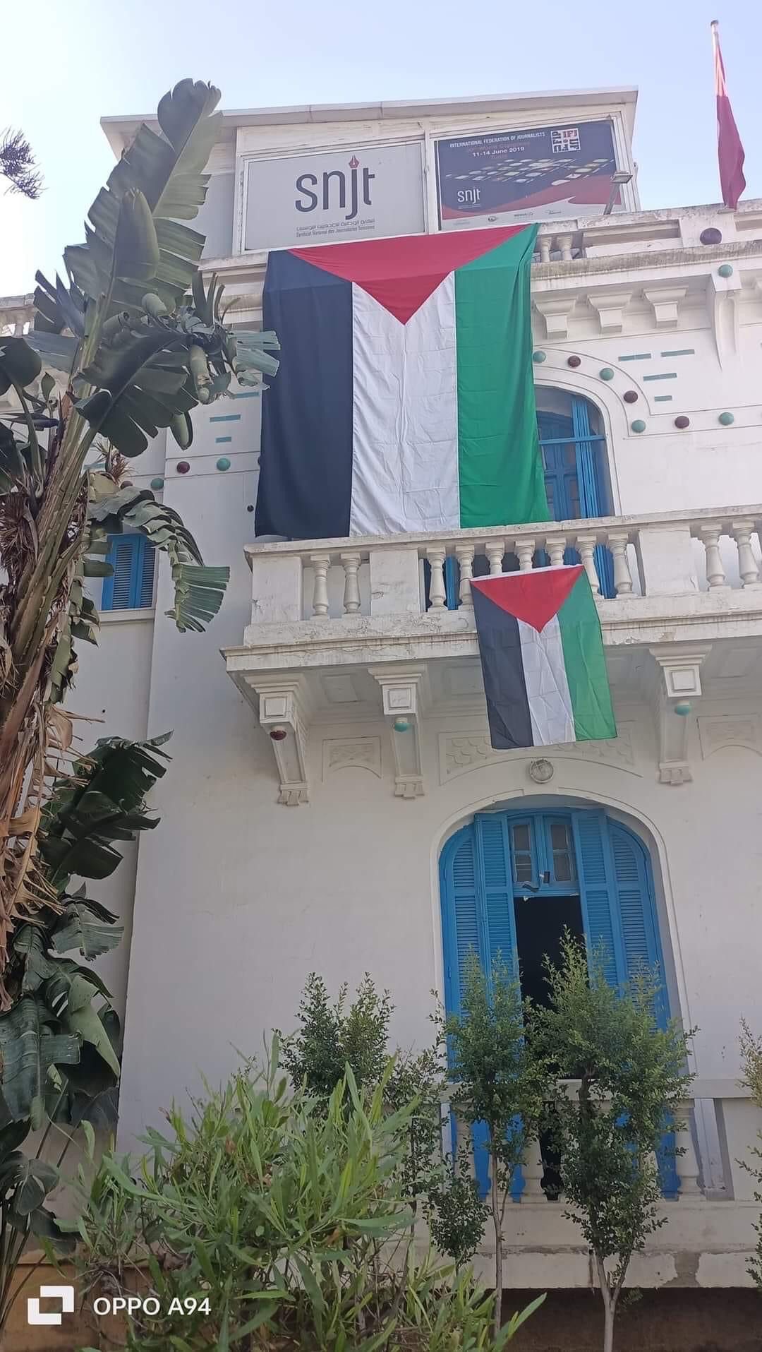 بدعوة من النقابة الوطنية للصحفيين التونسيين انتظمت اليوم الاثنين 16اكتوبر 2023 وقفة تضامنية أمام مقر النقابة تضامنا مع الشعب الفلسطيني أمام الهجمة التي تنفذها عصابات الكيان الصهيوني ضد شعبا اعزلا.