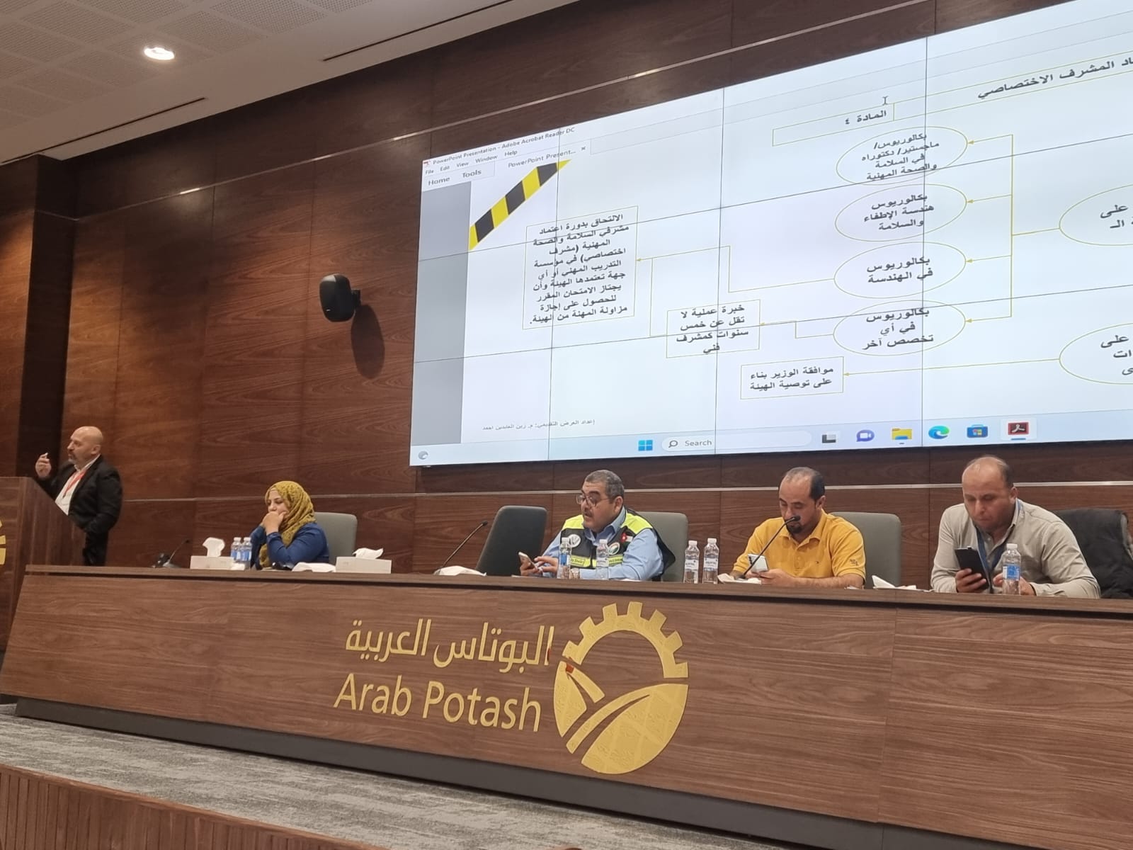 قامت مديرية عمل الكرك قسم السلامة والصحة المهنية بالتعاون مع شركة البوتاس العربية / إدارة البيئة و السلامة بعقد ورشة عمل حول القوانين والأنظمة المحدثة في قانون العمل.ولقد استهدف الورشه الشركات العامله في شركة البوتاس العربيه وعددها ما يقارب ٩٠ شركة.بعد أن رحب مدير إدارة البيئة والسلامه المهندس عبدالله شيخو بالمشاركينقدم رئيس قسم السلامة والصحة المهنية م لطفي الرواشده إيجاز عن دور وزارة العمل بتحديث الأنظمة لمواكبت التطور المستمر في جميع المجالات وقدمت المهندسة اماني العساسفة والسيد نشأت القويدر والمهندس معاذ الطراونة شرح تفصيل عن القوانين و الأنظمة المحدثه. ولقد شارك في الورشه ما يقارب ١٠٠ شخص من جميع الشركات ومن ذوي الاختصاص في مجال السلامه والصحة المهنية