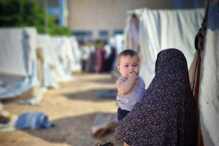 خيام النازحين في خانيونس جنوب قطاع غزة للمواطنين الذين رحلوا من شمال القطاع جراء الغارات الاسرائيلية المكثفة