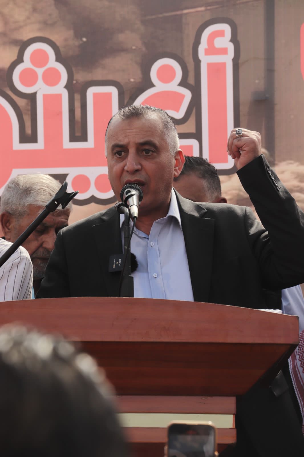 نظم حزب إرادة في محافظة الكرك، وقفة تضامنية مع الشعب الفلسطيني البطل، والذي يعاني من إبادة جماعية وتطهير عرقي، وذلك بمشاركة حشود من مختلف أنحاء المملكة، منددين بالعدوان المتواصل ضد أبناء الشعب الفلسطيني، وداعمين للموقف الأردن الرسمي بقيادة جلالة الملك عبدالله الثاني، وسمو ولي العهد. وقال الأمين العام لحزب إرادة نضال البطاينة : " أرانا تركنا وحيدين كأردنيين مع الفلسطينيين ولنا الشرف وهذا ديدننا ، أقولها من هنا من أرض الكرك، ومن أمام قلعة سائد المعايطة وابراهيم الضمور وزوجته علياء الذين ارتضيا حرق ابنائهما بفرح وفضلوا ذلك عن تسليم الفلسطينيين وقتها؛ الكرك التي بمحاذاة الخليل، الخليل التي وصل طوفان المقاومة البطلة لعشرة كيلومترات منها، إن ما يحدث هو إبادة جماعية : لأطفال، ومدنيين، وشعب أعزل؛ بهدف إزالة غزة، ولكن غزة باقية رغم أنف اللا بشر وأعداء الإنسانية "، مشددًا أن ما يقوم به الكيان الصهيوني برئاسة نتنياهو وزمرته المصنفين بمجرمي حرب، وبمساندة من نظام أمريكي يعمل على انتخابات بعد عام، قائلا : "من المعيب أن يصدر هذا الدعم عن رئيس دولة تدعي وقوفها مع السلام وحقوق الإنسان، حتى أنهم استخدموا حق النقض “الفيتو” في مجلس الأمن الدولي ضد قرار يدعو إلى هدنة إنسانية للسماح بدخول المساعدات الإنسانية إلى قطاع غزة، ولكن ها هو الحسين ابن عبد الله حفيد الحسين يشرف بهذه اللحظات على تحميل طائرات الإغاثة ". وأضاف البطاينة أن الامريكان بأفعالهم هذه يخلقوا من العالم الحر أعداء لهم _ فقط _من أجل انتخابات رئيسهم القادمة ".وشدد البطاينة: " إن الولايات المتحدة أصبحت بنظرنا جزءًا رئيسيا من المشكلة، وشريكًا للكيان بعدوانه، وهذا ضمنيا يعني عدم القبول بها بأن تكون جزء من الحل والتفاوض، وعلى الشعب الأمريكي أن يعي بأن أموالهم التي يدفعونها كضرائب هي موجهة لقتل الأطفال في فلسطين ".وأضاف البطاينةً : " نعلنها اليوم في حزب إرادة ومع الشرفاء أبناء الشعب الأردني الواحد أن الصراع بات جليًا، إنه صراع وجود لا حدود، وما نريده هو فلسطين كاملة من البحر إلى النهر؛ لأن قاتل الأطفال لا عهد له ولا ذمة ، وطالب بإسم حزب ارادة بوقف فوري للاعتداءات التي تحدث، وطرد سفير قتلة الاطفال الإسرائيلي فورا، وقطع أي علاقات دبلوماسية مع هذا الكيان الغاصب"، مؤكدا الاعتزاز بدور قيادتنا الهاشمية المظفرة ، القوية ذات العزيمة بالحق وهذا العزم هو شرف لكل أردني؛ لأنه يزهق الباطل، وكلنا فخر بقواتنا المسلحة الباسلة وأجهزتنا الأمنية، ونقول للكيان : " إن غزة في كل بادية وقرية ومخيم في الأردن، غزة لن تموت وإنما تتجدد فاجتاحوها برًا أو جوا ستتجدد كل يوم "، وأكد البطاينة أن لا العالم ولا المنطقة ستنعم بأمن ولا سلام إلا بنيل الشعب الفلسطيني الأبي كامل حقوقه على كامل ترابه. وبين ان الأردن اليوم شعبًا وقيادة _وحده _ مع فلسطين في ظل تخاذل البعض، مذكرًا ببعض من أقوال جلالة الملك، وسمو ولي العهد خلال الأيام الماضية، والتي تؤكد عروبتهم وشرعيتهم الدينية ومركزية القضية الفلسطينية للأردن قيادة وشعبا، ولا مجال لأحد اليوم أن يزاود على موقف الأردن قيادة وشعب، ذلك الموقف الذي نأى بنفسه عن لغة المصالح والأرقام وهذا هو ديدن الأردن تاريخيا وحاضرا ومستقبلا. فالملك قالها بوضوح بعد أن رفض استقبال بايدن لعلمه بأجندته : " مجزرة مستشفى المعمداني بغزة جريمة حرب نكراء لا يمكن السكوت عنها”، وولي العهد قالها بوضوح : "لم يعد بإمكان العالم الغربي أن يدعي الأخلاق إذا استمرّ في اتباع هذه المعايير المزدوجة".كما قال ولي العهد " أين الدفاع عن النفس في استهداف الأطفال والمدنيين والطواقم الطبية؟ إنها جريمة حرب ورعب لايوصف".وأكد رئيس مجلس الحكماء في حزب إرادة، عبدالجليل المعايطة، على وحدة الحال مع الاشقاء الفلسطينيين وصلابة الموقف الأردني بقيادة جلالة الملك عبدالله الثاني الذي لا يقبل المزاودة، وهذا موقف متجدد فجيشنا عربي ورفاته لا تزال على ثرى فلسطين.وا