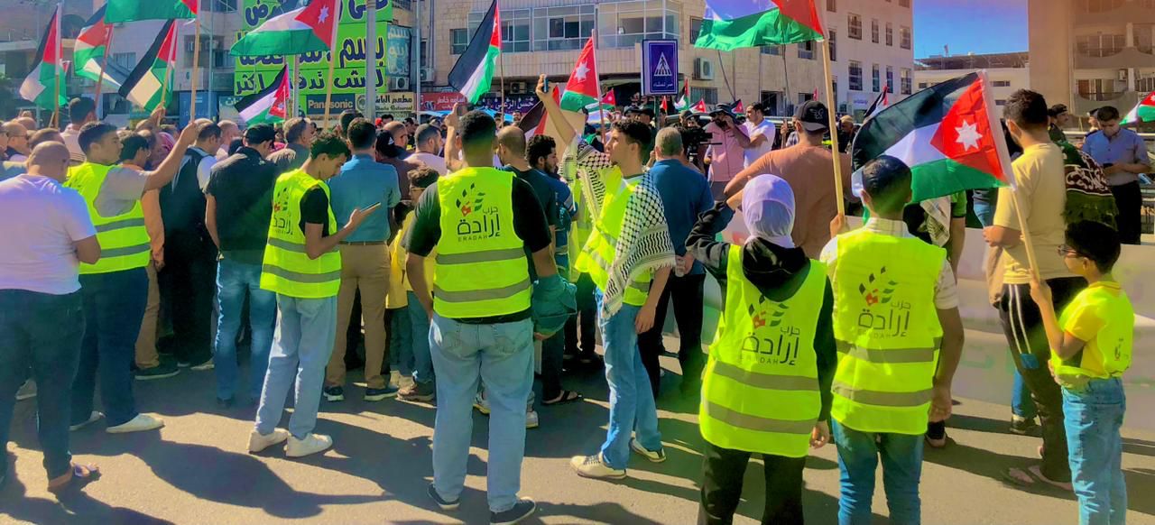 "شارك أعضاء حزب إرادة فرع العقبة وللأسبوع الرابع على التوالي بالوقفة التضامنية لدعم أهلنا وأشقاؤنا في قطاع غزّة إيماناً منّا بأن لا صوت يعلو على صوت الحق، وبالتشارك مع جميع الفعاليات الشعبية في محافظة العقبة، تنديداً بالعدوان على المدنيين والنساء والأطفال،وجرائم الحرب التي يقوم بها العدو الصهيوني وشجباً للموقف الدوليّ المنحاز. وسنبقى على خطى قيادتنا الهاشمية في الدفاع عن فلسطين بكل ما أوتينا من عزم وإرادة. حمى الله الوطن قيادةً وشعباً.