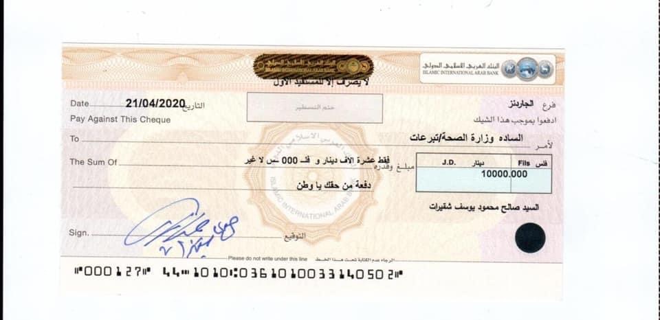 أيماناً منا بتأدية هذا الواجب فقد قمنا بتقديم دفعه من حق الاردن في أعناقنا والمساهمة بمبلغ ١٠٠،٠٠٠ مائة الف دينار لصندوق همة وطن و١٠،٠٠٠عشرة آلاف دينار لكل من وزارة التنمية الأجتماعة و و١٠،٠٠٠عشرة آلاف دينار لوزارة الصحة .