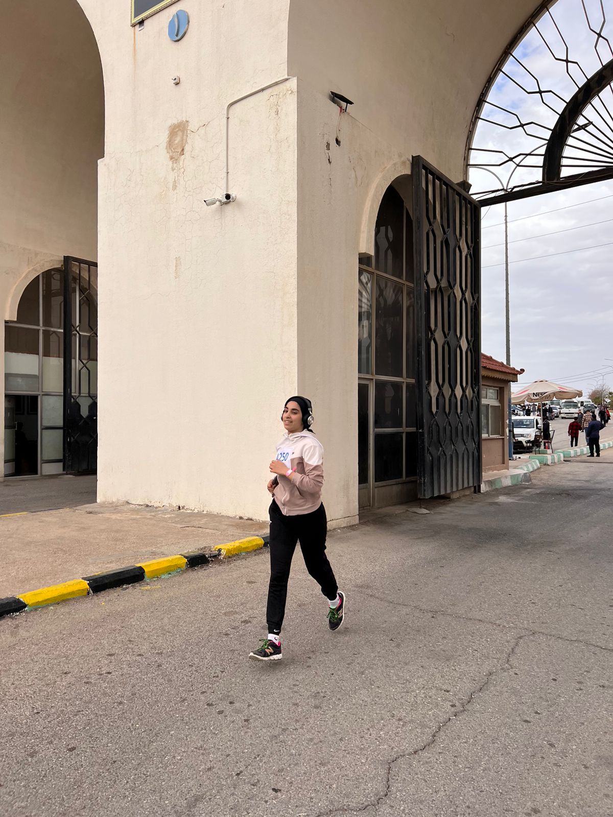 مندوباً عن رئيس الجآمعة معالي الاستاذ الدكتور سلامة النعيمات أطلق عميد كلية علوم الرياضة الاستاذ الدكتور أمجد مدانات اشارة البدء لسباق الضاحية لطالبات كلية علوم الرياضة الذي شاركت فيه ٣٥٠ طالبة حيث انطلق السباق من خلف ميدان الشهيد معاذ الكساسبة باتجاه البوابة الشمالية للجامعة وكانت نقطة النهاية للسباق في الساحة الخارجية وقد تصدر السباق ابتسام الخطبا ثم جاء في المراكز الخمسة تباعاً الطالبات تقى الهواورة ثم رؤيا عواد وسيلينا الحسنات و جوانا المجالي حيث توج العميد بعد نهاية السباق الفائزين بالمراكز العشرة الاولى علماً بان هذا السباق خصص له عشرة علامات ضمن علامات المشاركة في المواد العملية وقد شكر العميد الجهات الأمنية وكافة الجهات التي ساهمت في تنظيم وإنجاح السباق