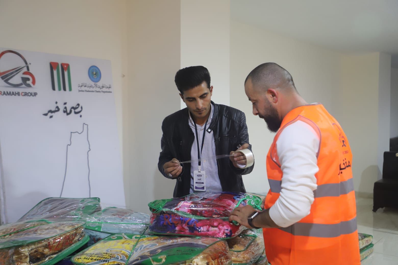 في خطوة إنسانية مشرفة، و في بادرة شبابيه جسدت الرؤى الملكية الساميه نفذت مبادرة بصمة خير حملة لتوزيع الطرود والمساعدات الإنسانية لدعم الأهل في غزة و بالتعاون مع الهيئة الخيرية الهاشمية في هذه الحملة وبدعم من (جمعية المزيرعة الخيرية ، غرفة صناعة عمان ، نقابة اصحاب شركات التخليص ، ملتقى الأعمال الفلسطيني الاردني .حيث تم تجهيز اعداد كبيرة من المساعدات التي تحتوي على مواد غذائية و جميع المستلزمات التي يحتاجها الأهالي في القطاع بالتنسيق و ان هذه الحملة ما زالت مستمره و يتم التجهيز لعدد من جديد من الطرود التي تحتوي على مواد غذائية وغيرها .ومن جهته عوده الرمحي القائم على هذه الفكرة ، قال ان بصمة خير هي مبادرة تم اطلاقها منذ اسبوعين تقريباً لدعم صمود اشقائنا في غزة و تأتي هذه الفكرة لما نراه على شاشات التلفاز من تجويع وحرمان للشعب الغزي من ابسط حقوقه وكي تصل الرسالة للعالم اجمع بأننا كشعوب نستطيع وضع بصمة خير وايصالها لاخواننا بكل صدق واننا لن نقف مكتوفي الايدي والاكتفاء بمشاهدة ما يحدث على شاشات التلفاز ، لذا قررنا ان نضع بصمة خير لتأكيد موقفنا تجاه المظلومين والصامدين تحت القصف الهمجي من الاحتلال ، ولنؤكد للعالم بأن الشعب الأردني والشعب الفلسطيني هم شعب واحد ، والقلب ينبض باسم فلسطين .