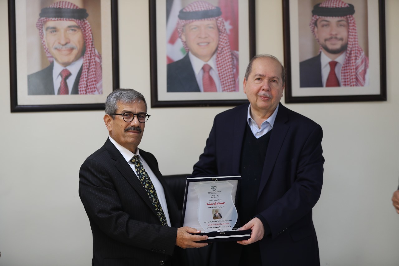 وقد القى العميد الدكتور أحمد السلايمة كلمة اشاد فيها في الجهد الذي بذله المستشار حماده فراعنة والذي استحق هذا التقدير عن كفاءة وقدرة .