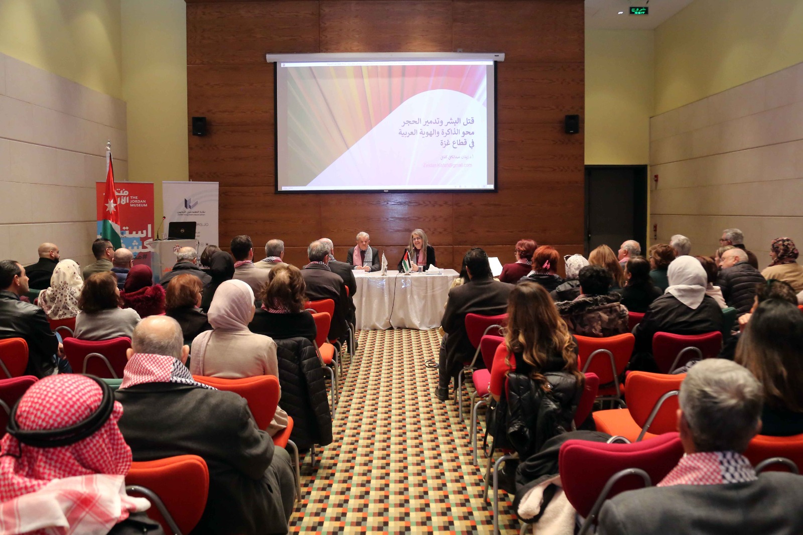 نظمت لجنة الحفاظ على الابنية التراثية في شعبة الهندسة المعمارية وبالتعاون مع متحف الاردن محاضرة لعالم الاثار العالمي الدكتور زيدان كفافي تحت عنوان "قتل البشر وتدمير الحجر – محو الذاكرة والهوية العربية في قطاع غزة".واكد مندوب نقيب المهندسين، عضو مجلس النقابة و رئيس شعبة الهندسة المعمارية المهندس عماد الدباس خلال كلمته على أن هذه الفعالية تأتي لتبرز أمام العالم أجمع ما يقوم به العدو الصهيوني من قتل وتهجير وتجويع وهدم للمنازل ولكل مقدرات الحياة في خطوة ترقى الى الابادة الجماعية لشعبنا الفلسطيني في غزة وفي كافة انحاء فلسطين .وأشار الدباس الى الدور المميز الذي تقوم به الدولة الاردنية وعلى راسها الجهود الملكية في الدفاع عن الاشقاء في فلسطين، وأن الدفاع عن قضايا الامة هو جزء من عقيدة الهاشميين وهو عنوان مسيرة الوطن منذ تاسيسه. وألمح الى أن الموقف الاردني يرتكز تاريخيا على الوصاية الهاشمية على المقدسات الاسلامية والمسيحية في القدس حيث تؤكد السياسة الاردنية بقيادة جلالة الملك في كل مناسبة على الرابطة القوية دينياً وقومياً وتاريخياً للهاشميين بالقدس، وعلى مكانة هذه المدينة المقدسة لديهم، وهو ارتباط وثيق توارثه الهاشميين كابراً عن كابر.وأوضح أن نقابة المهندسين الاردنيين جزء لا يتجزا من المقاومة وهي ترفع شعار المقاومة بالاعمار من خلال حملاتها السنوية لاعمار وتمكين المقدسيين في القدس من خلال حملة فلنشعل قناديل صمودها ، اضافة الى ان نقابة المهندسين تتراس اللجنة العليا للاعمار في فلسطين التي تضم نقابة المهندسين الاردنيين ونقابة مقاولي الانشاءات الاردنية، حيث نظمت حملة بعنوان غزة معا ننصرها لجمع التبرعات و جمعت اكثر من 3 ملايين دينار وهي مستمرة في جمع التبرعات في كافة فروعها، كما شاركت النقابة في كافة الفعاليات التي ينظمها مجمع النقابات المهنية من مسيرات ووقفات احتجاجية وحملات لدعم صمود اهلنا في غزة وفلسطين. من جانبه قال الدكتور زيدان كفافي خلال المحاضرة أن صراعنا مع الصهيونية على المكان ، فهم يعتمدون على القصة التوراتية بينما نعتمد نحن على القصة التاريخية، لذلك تقوم اسرائيل بقتل الانسان ومحو القصة التاريخية والاثرية من خلال تدمير الحجر والشجر بهدف محو الهوية العربية في قطاع غزة.واستعرض المحاضر الحقب التاريخية التي تعاقبت على قطاع غزة وعرض لمحة تاريخية عن اهمية قطاع غزة عبر التاريخ، كما استعرض اهم الاثار الموجودة في القطاع، مبينا ان غزة لها جذور تاريخية عميقة.كما بين المباني التاريخية وفنون العمارة التي استخدمها سكان غزة عبر العصور في بناء المساجد، والكنائس، والمدارس، والاسواق، وعرض صورا تبين الدمار الذي حل بها بعد العدوان الهمجي على القطاع. وبين انه تم تدمير اكثر من 200 موقع اثري و12 متحف اضافة الى المكتبات ومراكز التوثيق، ما يؤكد على ان هذا التدمير ممنهج ومخطط له لمحو الذاكرة والتاريخ والهوية ولقتل الانسان.واكد المحاضر أن التراث الثقافي هو الهوية وأن الآثار هي وثائق سياسية وأن معرفة هذه الآثار وهذا التراث يعزز الانتماء، وبين ان ما تقوم به اسرائيل من تدمير للتراث هو تدمير للهوية العربية وهي جزء من التراث العالمي ، واكد المحاضر أن هذا التدمير هو مخالف لكل الاتفاقيات الخاصة بالمحافظة على التراث متسائلا عن دور المؤسسات الدولية مثل اليونسكو وجمعية التراث العالمي ، وجمعية المتاحف العالمية التي لم تحرك ساكنا عندما قامت اسرائيل بتدمير التراث الاثري الفلسطيني.وكانت رئيسة لجنة الحفاظ على الابنية التراثية في شعبة الهندسة المعمارية المهندسة مرح خياط قد القت كلمة ترحيبية أكدت خلالها على أن المعاناة المستمرة في قطاع غزة المحتل هي أزمة إنسانية ملحة تتطلب اهتمام ومساهمة الجميع، وأنها قضية تتجاوز الحدود والانتماءات السياسية. وهي قضية صراع طال أمده وخلف عددا لا يحصى من الأرواح المحطمة، كما دمر تراثا ثقافيا غنيا ومميزا، لافتة الى أن الحفاظ على الهوية الثق