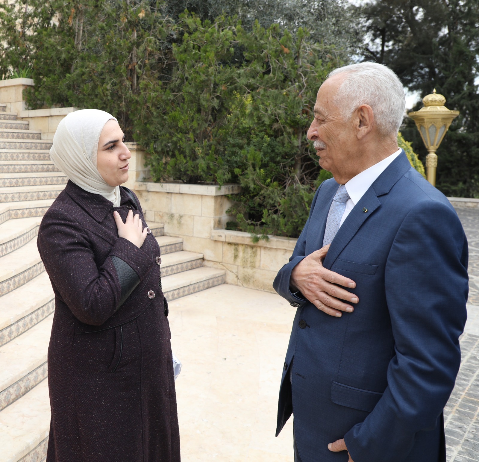 وفي بداية اللقاء، قال العيسوي إن الأردن، بقيادته الهاشمية، كان ولا زال وسيبقى، ثابت على مواقفه تجاه القضية الفلسطينية، ويواصل جهوده لرفع الظلم عن الأشقاء الفلسطينيين ومساندتهم لنيل حقوقهم المشروعة في الحرية وتقرير المصير وقيام دولتهم المستقلة وعاصمتها القدس الشرقية.