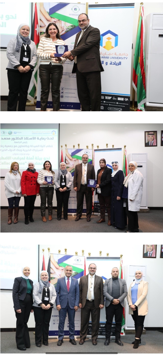 رعى الأستاذ الدكتور إسماعيل يامين مساعد الرئيس للشؤون الأكاديمية مندوباً عن رئيس الجامعة الأستاذ الدكتور محمد الوديان فعاليات اليوم العلمي التوعوي تحت شعار "نحو بيئة آمنة لمرضى الاضطرابات الهضمية (Celiac disease)" بحضور عميد كلية الصيدلة الأستاذ الدكتورة رنا أبوحويج والسادة عمداء الكليات وأعضاء الهيئتين التدريسية والإدارية وطلبة الجامعة.حيث أشارت الدكتورة أبو حويج في كلمتها خلال افتتاح الفعالية عن التزام كلية الصيدلة في جامعة عمان العربية الكامل لتعزيز الوعي وتقديم الدعم للمجتمع في مواجهة تحديات الأمراض، كما ركزت على أهمية دور الصيدلاني في عملية التوعية والتثقيف لأفراد المجتمع وأن هذه الأيام التوعوية تلعب دورًا كبيراً في زيادة الوعي العام للطلبة وتصقل شخصية الطالب وتشجع التواصل مع أفراد المجتمع، معززة التضامن والدعم الاجتماعي لمرضى السيلياك وخاصة أن معظم المرضى المصابون بمرض السيلياك ليست لديهم معرفة حول إصابتهم به.يشار إلى أن اليوم العلمي شهد تعاوناً مميزاً متكاملاً للتعريف بمرض السيلياك وتقديم الدعم لمرضى السيلياك لتوفير بيئة آمنة للأفراد المصابين ، فمن خلال جمعية رعاية مرضى السيلياك الخيرية قدمت رئيس الجمعية السيدة عابدة القيسي في محاضرتها نظرة عن كثب على أهداف وأنشطة الجمعية وأوضحت أن تأسيس الجمعية يأتي في إطار رغبتها القوية في تقديم الدعم والمساعدة لمرضى السيلياك، وذلك لتحسين جودة حياتهم وتسهيل تعاملهم مع هذا المرض، وبدورها شرحت الدكتورة الصيدلانية سهام حمزة في محاضرتها عن مفهوم مرض السيلياك وأسبابه وأعراضه وآثاره الصحية، وقدمت الدكتورة هانية شموط ممثل بنك الدواء الخيري شرحاً وافياً عن الأدوية المناسبة لمرضى السيلياك وتوفرها وخلو محتوياتها من مادة الغلوتين.الدكتورة نور الساحوري الأستاذ المساعد في جامعة البتراء قدمت بدورها محاضرة حول أهمية الجانب الغذائي لمرضى السيلياك والنصائح والتوجيهات حول النظام الغذائي المناسب، ومن ثم قدمت المدربة دانا صلاح التحديات التي تواجه مرضى السيلياك ونقلت تجارب علمية حول كيفية التأقلم وتكيف نمط حياة صحي للحفاظ على الرفاهية العامة، تلتها المشرف السريري علا الصالح والتي أبرزت دور الصيدلاني من خلال مشاركتها مع الطلبة الحضور من كلية الصيدلة في التعامل مع الحالات المرضية والأدوية التي يجب صرفها لمرضى السيلياك.يشار إلى أن اليوم التوعوي تخلله مشاركة من محفوظة البوطي مالكة مخبز "غلوتين فري" والتي نقلت تجربتها مع المرض وكيف تعاملت مع تحديات المرض لتؤسس مشروعاً ناجحاً يقدم خيارات غذائية صحية للمصابين بالمرض، وكذلك شهد اليوم مشاركة مستودع أدوية ارغون في عرض مجموعة من الأدوية التي تتناسب مع المرضى وتخلو من مادة الجلوتين.واختتمت الفعالية بتجربة فريدة اتسمت بأجواء مليئة بالاستمتاع حيث قدمت محفوظة البوطي تشكيلة من المأكولات اللذيذة والخالية من الغلوتين، واستكملت بتقديم عينات من الأدوية الخالية من الغلوتين من قبل بنك الدواء الخيري ومستودع أدوية ارجون مثبتين التزامهم بتوفير حلول صحية لمرضى السيلياك.
