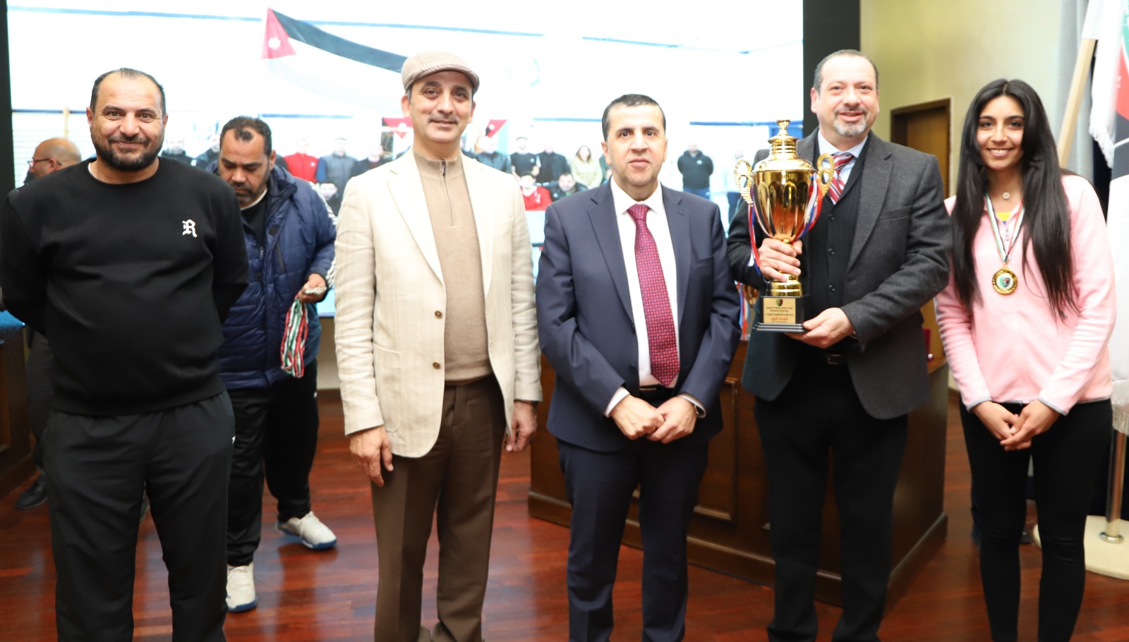 توج رئيس جامعة البلقاء التطبيقية الاستاذ الدكتور أحمد فخري العجلوني الفرق الفائزة في نهائيات البطولات الرياضية للاتحاد الرياضي للكليات الجامعية والجامعية المتوسطة في دورته العشرين بحضور الأساتذة نواب رئيس الجامعة وعميد شؤون الطلبة رئيس الاتحاد الرياضي للكليات الجامعية والجامعية المتوسطة الاستاذ الدكتور خالد الزعبي وعدد من عمداء الكليات ومدراء الوحدات والمراكز والدوائر وطلبة الجامعة. والقى عميد شؤون الطلبة الاستاذ الدكتور خالد الزعبي كلمة قال فيها ان ذكرى ميلاد قائد الوطن وملك القلوب هي ذكرى غالية على قلوبنا جميعا، نحتفل بها كل عام بإقامة بطولة القائد في عدد من متنوع من الألعاب الرياضي، مشيرا ان احتفال هذا العام جاء مع احتفالات المملكة باليوبيل الفضي لاستلام جلالة الملك عبدالله الثاني ابن الحسين المعظم سلطاته الدستورية، والذي يحكي قصة الإنجازات التي شيدها الاردنيون بقيادة جلالة الملك، لافتا ان جامعة البلقاء التطبيقية وبتوجيهات مباشرة من رئيسها الاستاذ الدكتور أحمد فخري العجلوني حرصت على دعم الرياضة والرياضيين المميزين والمتفوفين من طلبة الجامعة ممن تمكنوا من الحصول على البطولات وتحقيق الإنجازات على الصعيدين المحلي والدولي. وتضمن الحفل عرض فيديو عن مسيرة جلالة الملك المفدى منذ تسلمه سلطاته الدستورية في العام ١٩٩٩ بالإضافة إلى فيديو تعريفي عن مسيرة الاتحاد الرياضي للكليات الجامعية والجامعية المتوسطة. وفي ختام الحفل توج رئيس الجامعة الاستاذ الدكتور أحمد فخري العجلوني بحضور رئيس الاتحاد الرياضي للكليات الجامعية والجامعية المتوسطة الاستاذ الدكتور خالد الزعبي الفرق الفائزة في نهائيات بطولات الاتحاد الرياضي للكليات الجامعية والجامعية المتوسطة بالإضافة إلى تكريم منتخب الجامعة لكرة الطاولة للطالبات لحصوله على المركز الأول على مستوى الجامعات الاردنية، وتكريم المرحوم الدكتور منذر كريشان عميد كلية الزرقاء الجامعية الأسبق نائب رئيس الاتحاد. واسفرت نهائيات الاتحاد الرياضي للكليات الجامعية والجامعية المتوسطة بدورته العشرين على النحو التالي: حصل فريق كلية الهندسة التكنولوجية على المركز الأول في بطولة كرة السلة طالبات ٣*٣ فيما حل فريق كلية الاميرة رحمة الجامعية في المركز الثاني. كما حصل فريق مر كز الجامعة في بطولة كرة السلة ٣*٣ للطلاب فيما حصل فريق كلية الهندسة التكنولوجية على المركز الثاني.وحصل فريق كلية الخوارزمي في بطولة الكرة الشاطئية للطالبات على المركز الأول فيما حصل فريق كلية اربد الجامعية على المركز الثاني. كما حصل فريق كلية اربد الجامعية على المركز الأول في بطولة كرة الطائرة الشاطئية للطلاب فيما حل فريق مركز الجامعة بالمركز الثاني. وعلى صعيد الريشة الطائرة فردي طالبات حل فريق مركز الجامعة بالمركز الأول فيما حل فريق كلية الخوارزمي بالمركز الثاني. وحصل فريق مركز الجامعة على المركز الأول في بطولة الريشة الطائرة زوجي طالبات فيما حل فريق كلية الطفيلة بالمركز الثاني. وفي بطولة الريشة الطائرة فردي طلاب حصل فريق كلية لومنيوس على المركز الأول وحل فريق مركز الجامعة على المركز الثاني. وفي بطولة الريشة الطائرة زوجي طلاب حصل فريق كلية الطفيلة على المركز الأول فيما حصل فريق مركز الجامعة على المركز الثاني. وفي بطولة الطائرة طالبات حصل فريق كلية اربد الجامعية على المركز الأول فيما حصل فريق كلية الخوارزمي على المركز الثاني. كما حصل فريق كلية الكرك الجامعية على المركز الأول في بطولة الطاولة طلاب فيما حصل فريق كلية الطفيلة على المركز الثاني. وفي بطولة اليد حصل فريق مركز الجامعة على المركز الأول فيما حصل فريق كلية الهندسة التكنولوجية على المركز الثاني. كما تسلم جوائز كأس الاتحاد الشامل طالبات عميد شؤون الطلبة الاستاذ الدكتور خالد الزعبي، ووسام الاتحاد للمشرف الرياضي الكابتن إيناس ابو شقراء. وتسلم جوائز كأس الاتحاد الشامل طلاب نائب عميد كل
