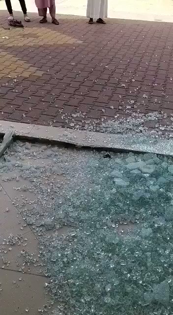 ويظهر الفيديو حجم الضرر الذي لحق بالمحل، حيث تحطم زجاجه الخارجي وأتلفت البضاعة جراء الصدمة القوية للسيارة التي بقيت عالقة داخله، ويحيط بها عدد من الأشخاص.