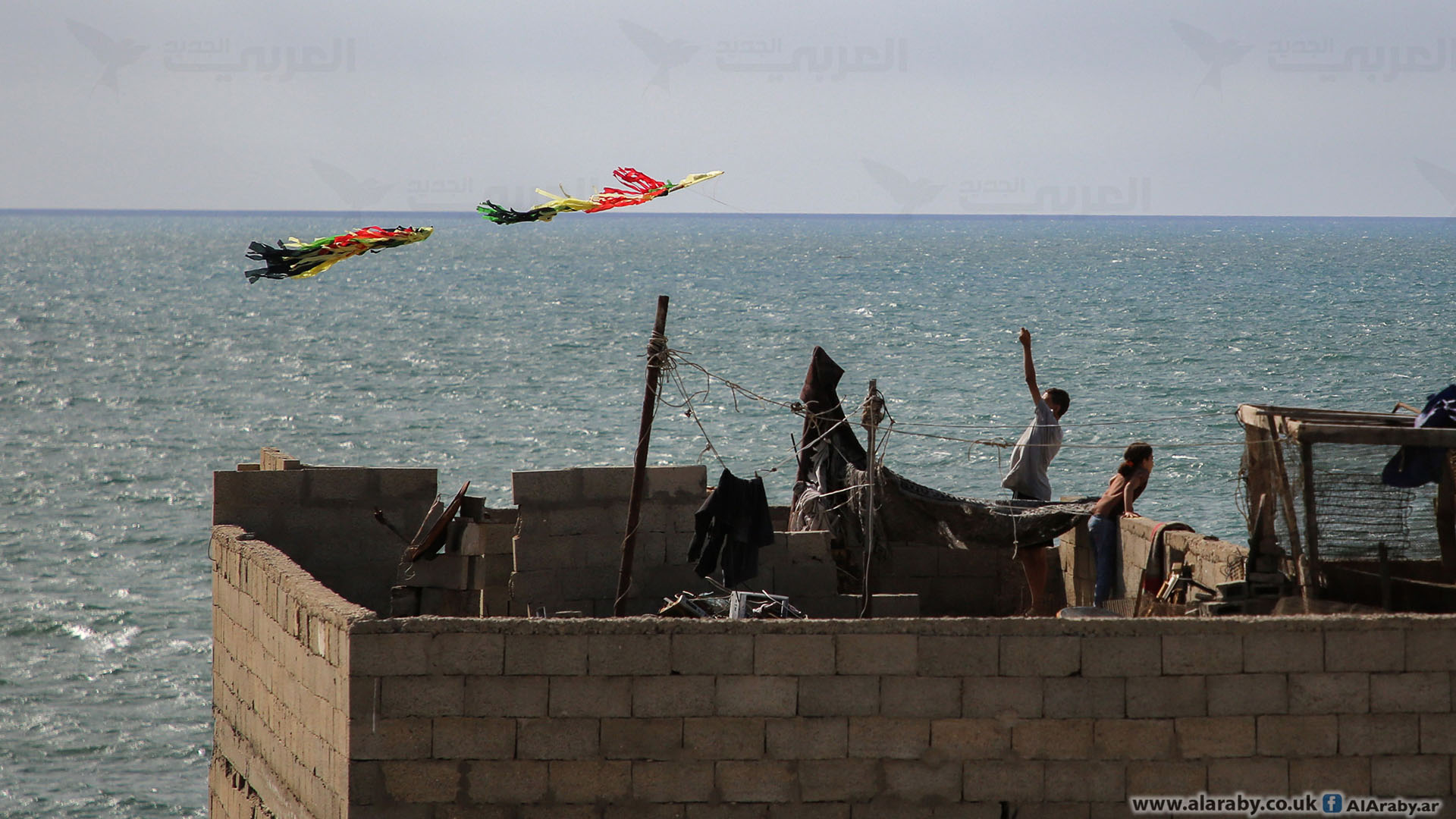 طَيّر الفتى سمير أبو عاصي، طائرته الورقية من سطح منزل أسرته، في مخيم الشاطئ للاجئين الفلسطينيين، غربي مدينة غزة، تزامنًا مع فعالية مجتمعية أُطلقت فيها الطائرات الورقية، بمناسبة ذكرى النكسة.