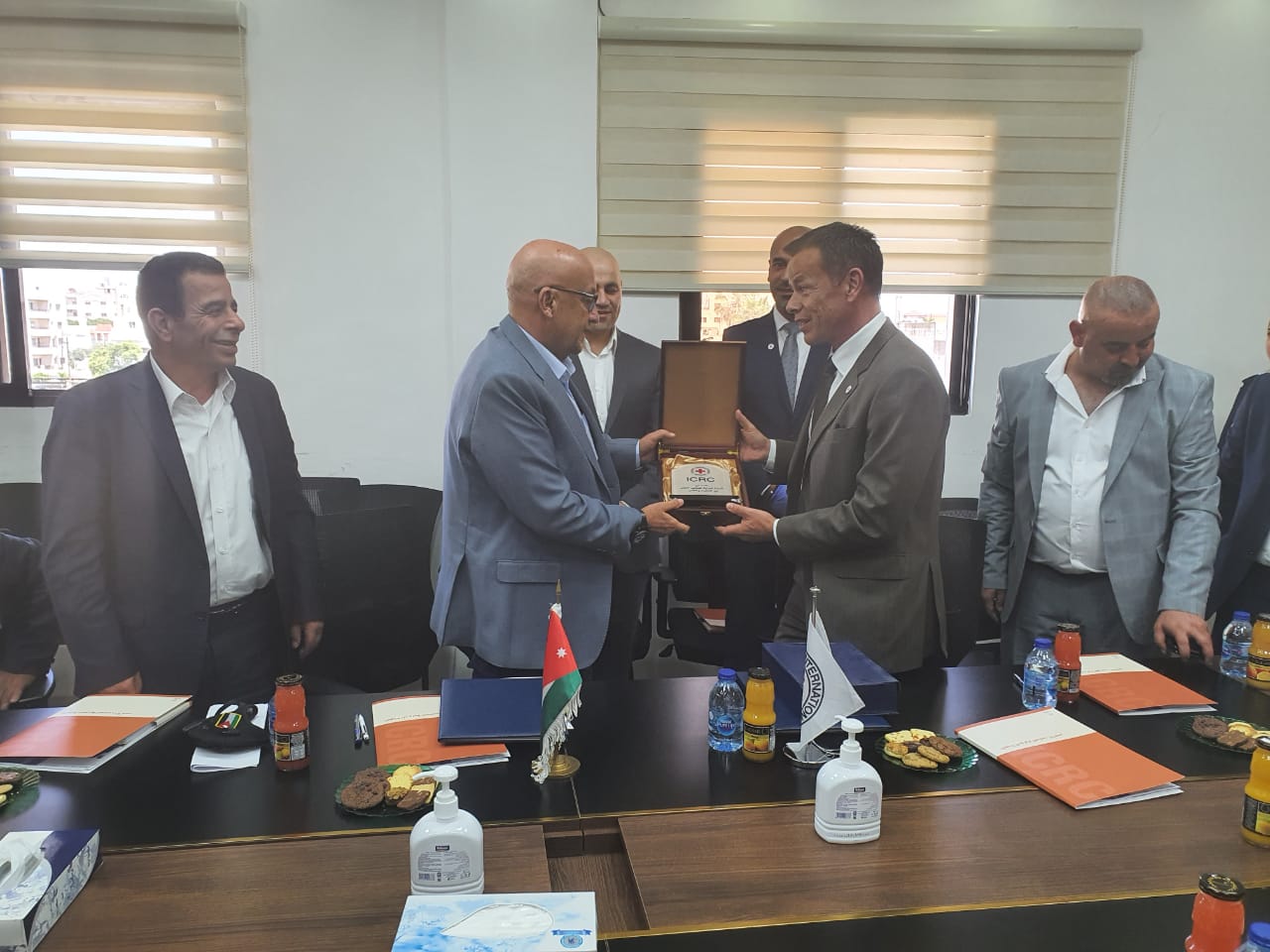 وقع وزير المياه والري المهندس رائد ابو السعود ورئيس بعثة اللجنة الدولية للصليب الاحمر يورغ مونتاني بحضور أمين عام وزارة المياه والري م. علي صبح ونائب امين عام سلطة المياه فراس العزام ورئيس هيئة مديري شركة مياه اليرموك م. توفيق المباشرة ومدير عام شركة مياه اليرموك م. منتصر المومني ومدير مكتب الوزير محمد الدقاق ومدير ادارة الازمات والسيطرة م. ابراهيم عبادة والمساعد للاعلام عمر سلامة وعدد من مسؤولي قطاع المياه في مقر شركة مياه اليرموك اتفاقية ومذكرة تعاون وتفاهم للعام 2020 بشأن تحسين توزيع المياه في عدد من محافظات الشمال واعادة تأهيل البنى التحتية الحيوية للمجتمعات المضيفة بقيمة (2) ملايين فرنك سويسري نحو ( 2 مليون دولار امريكي ) ضمن برنامج اللجنة الدولية للصليب الاحمر لمساعدة المجتمعات المستضيفة للاجئين وخدمة المجتمعات المحلية في ظل أزمة كورونا وانتشار وباء كوفيد -19 .