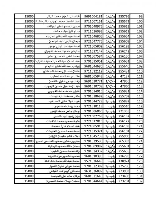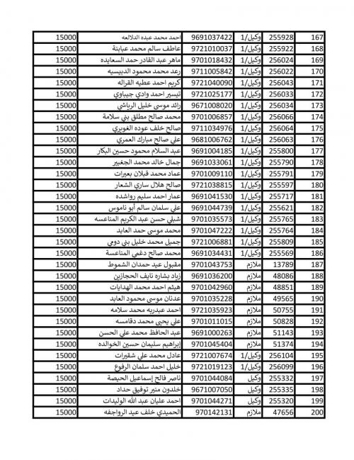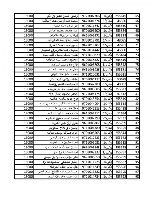 الدفعة الفرعية رقم (2) لمستحقي القروض الاسكانية العسكرية لشهر حزيران.