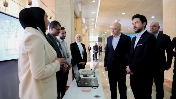زار سمو الأمير الحسين بن عبدالله الثاني، ولي العهد، اليوم الثلاثاء، المعرض الختامي للمسابقة الوطنية الأولى لتصميم الشرائح الإلكترونية، التي انطلقت في شهر آب من العام الماضي.وخلال جولته في المعرض، تبادل سموه الحديث مع 12 فريقا يمثلون عددا من الجامعات الأردنية ممن تأهلوا إلى المرحلة النهائية للمسابقة، حول مشاريعهم.وانطلقت فعاليات الحفل الختامي للمسابقة تحت رعاية سمو ولي العهد في المركز الثقافي الملكي اليوم ضمن البرنامج الوطني لفتح آفاق صناعة الشرائح الإلكترونية وأشباه الموصلات في الأردن، وهي إحدى الصناعات التي تتوافق مع مخرجات رؤية التحديث الاقتصادي.وتستخدم الشرائح الإلكترونية لتمرير الكهرباء داخل الأجهزة الإلكترونية، وتعد مكونا أساسيا في العديد من الصناعات التكنولوجية.ويهدف البرنامج الوطني إلى تطوير قدرات خريجي كليات الهندسة وتكنولوجيا المعلومات، من خلال تدريب مكثف تتبعه تطبيقات عملية وتوجيه مستمر من أساتذة جامعيين وخبراء في قطاع الصناعة، ليتمكن الطلبة من تطوير تصاميم معالجات باستخدام شرائح إلكترونية متقدمة.وتنفذ المعرض شركة الثورة الصناعية الخامسة، بالشراكة مع وزارة الاقتصاد الرقمي والريادة، ومؤسسة ولي العهد، وجمعية شركات تقنية المعلومات والاتصالات (إنتاج)، بدعم من صندوق الحسين للإبداع.ورافق سموه وزير التربية التعليم ووزير التعليم العالي والبحث العلمي الدكتور عزمي محافظة، ووزير الاقتصاد الرقمي والريادة أحمد هناندة، والرئيس التنفيذي لشركة الثورة الصناعية الخامسة المهندس مثنى غرايبة