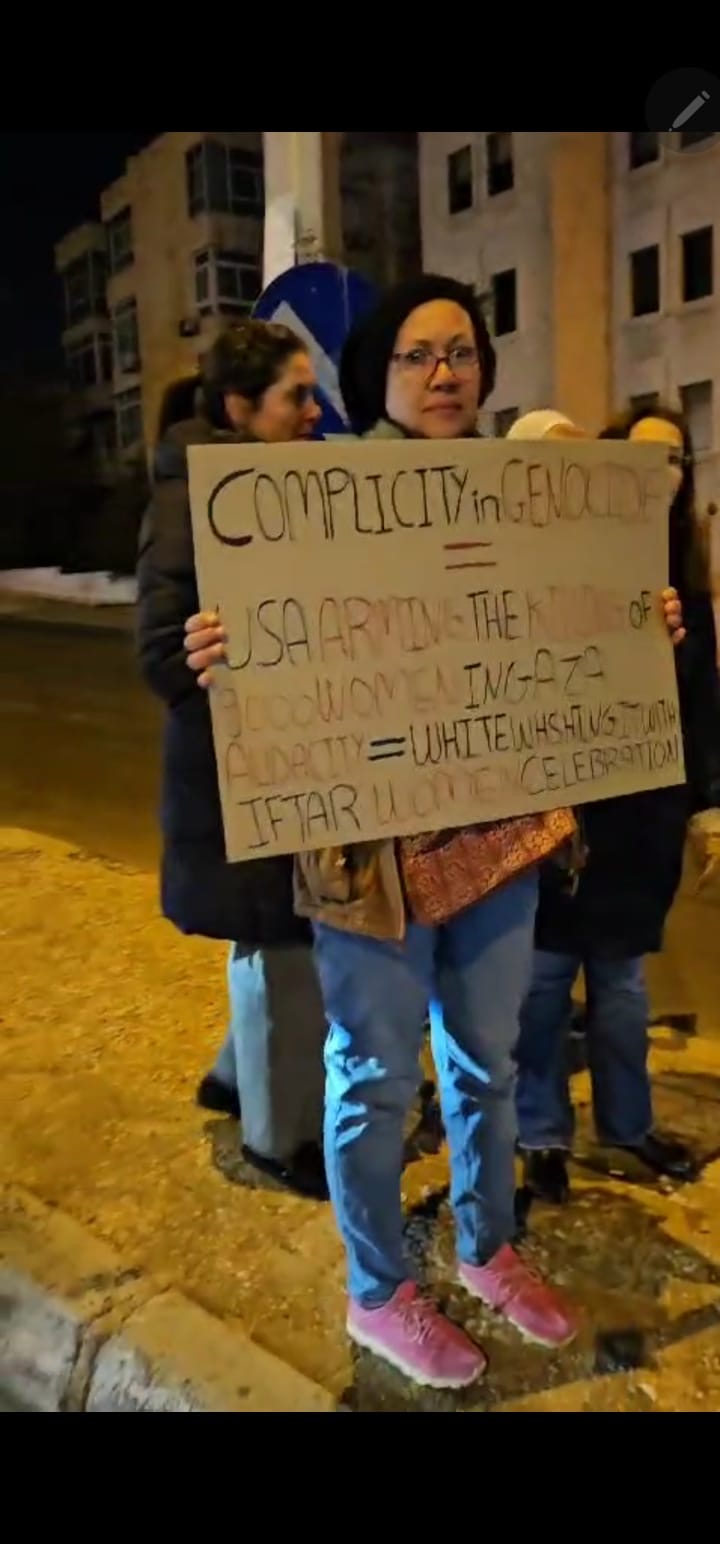 اردنيات يعتصمن رفضاً لإقامة السفيرة الأمريكية أمسية رمضانية في ظل العدوان على غزة