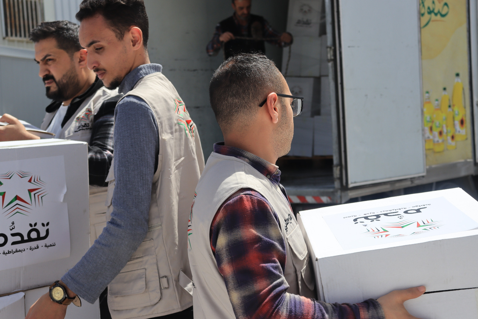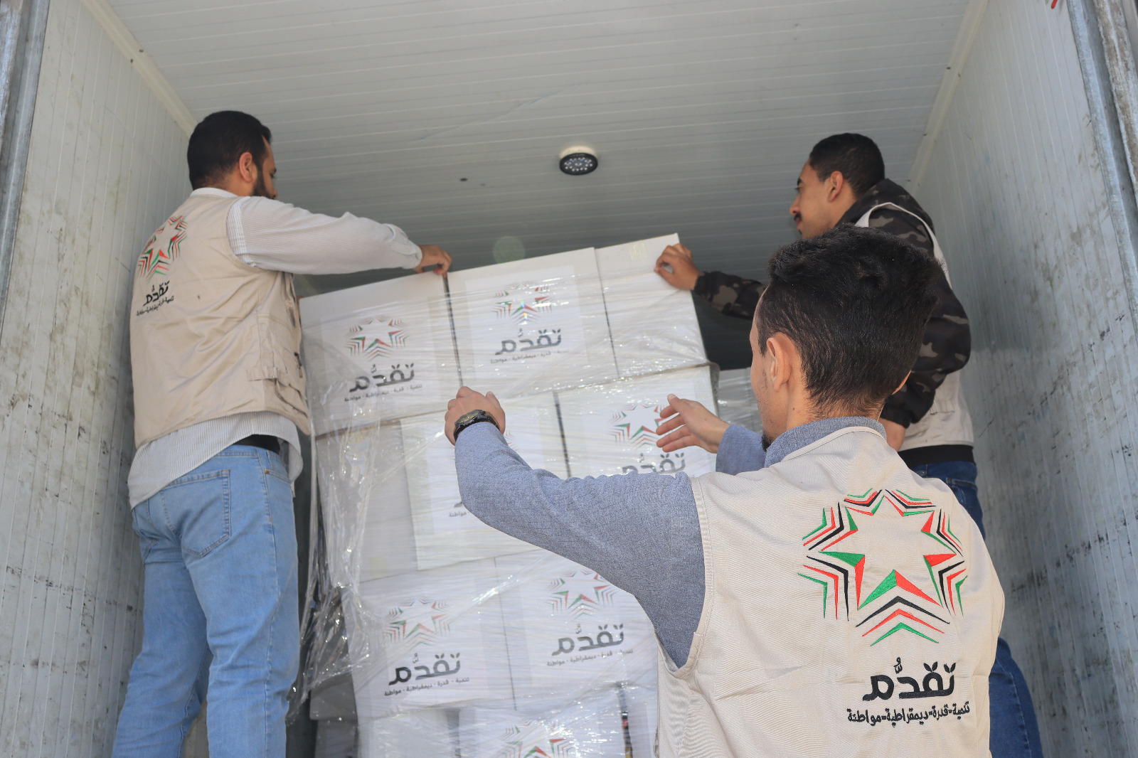 حزب تقدُّم يُسلِّم الهيئة الخيرية الهاشمية طرودا لشحنات الإغاثة الموجهة لغزة