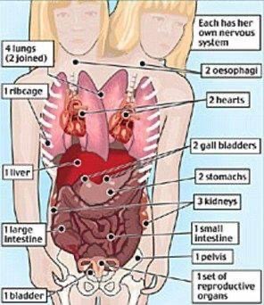 ويعيش التوأم الملتصق آبى وبريتانى هينزل حياة عادية كباقى الأشخاص، حيث تقودان السيارة وتتسوقان وتسبحان، وقد خلقتا ملتصقتين تتشاركان جسدا واحدا برأسين.