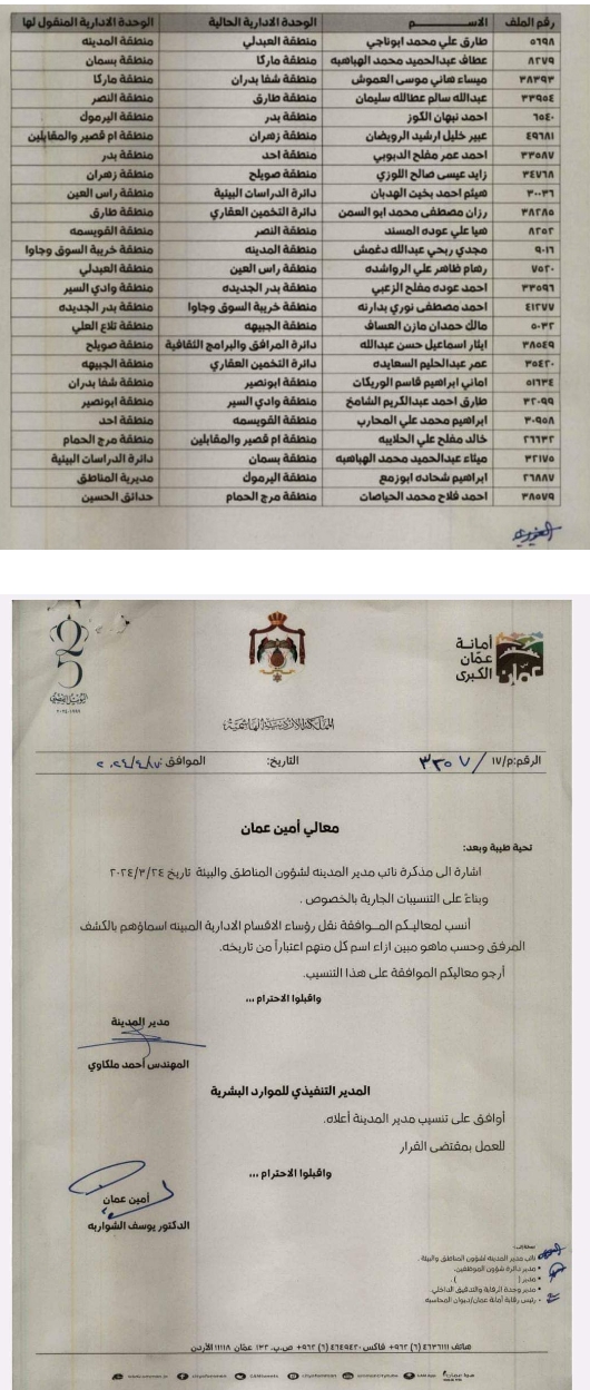 عاجل-نقل 25 رئيس قسم في أمانة عمان - أسماء