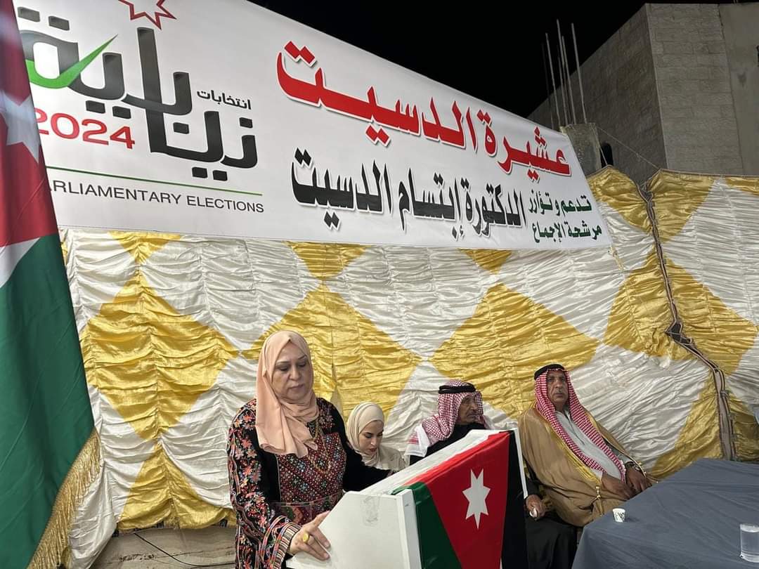 ونجمع أصواتنا وقلوبنا اليوم في بيان إجماع واحد، لنعلن دعمنا الكامل وتأييدنا القوي لابنة العشيرة التي نفخر بها الدكتورة ابتسام الدسيت، في الانتخابات النيابية لعام 2024.