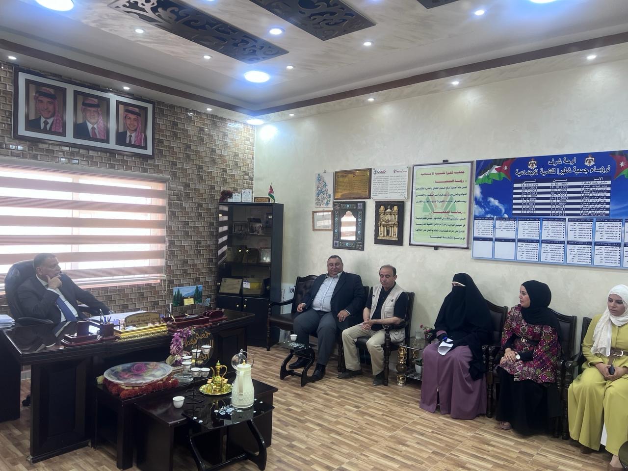 وخلال زيارة الفراية إلى جمعية شقيرا للتنمية الاجتماعية التقى رئيس الجمعية يونس الجعافره بحضور رئيس مجلس محافظة الكرك د عبد الله العبادلة واستمع الى ايجاز من القائمين على الجمعية عن البرامج والأنشطة التي تقدمها الجمعية في خدمة أبناء المجتمع المحلي