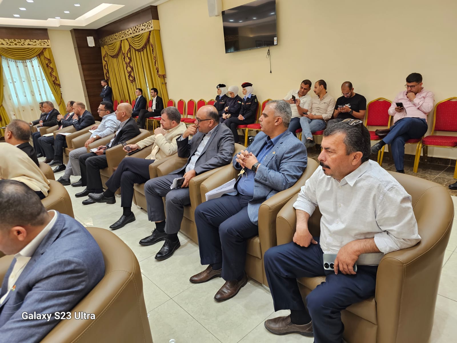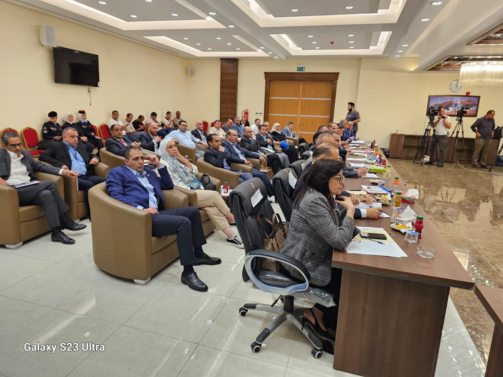 فيما رافق معالي وزير البلديات كل من وزيرة العمل والنقل والصحه والبيئة والمياه وعدد من الامناء العامين