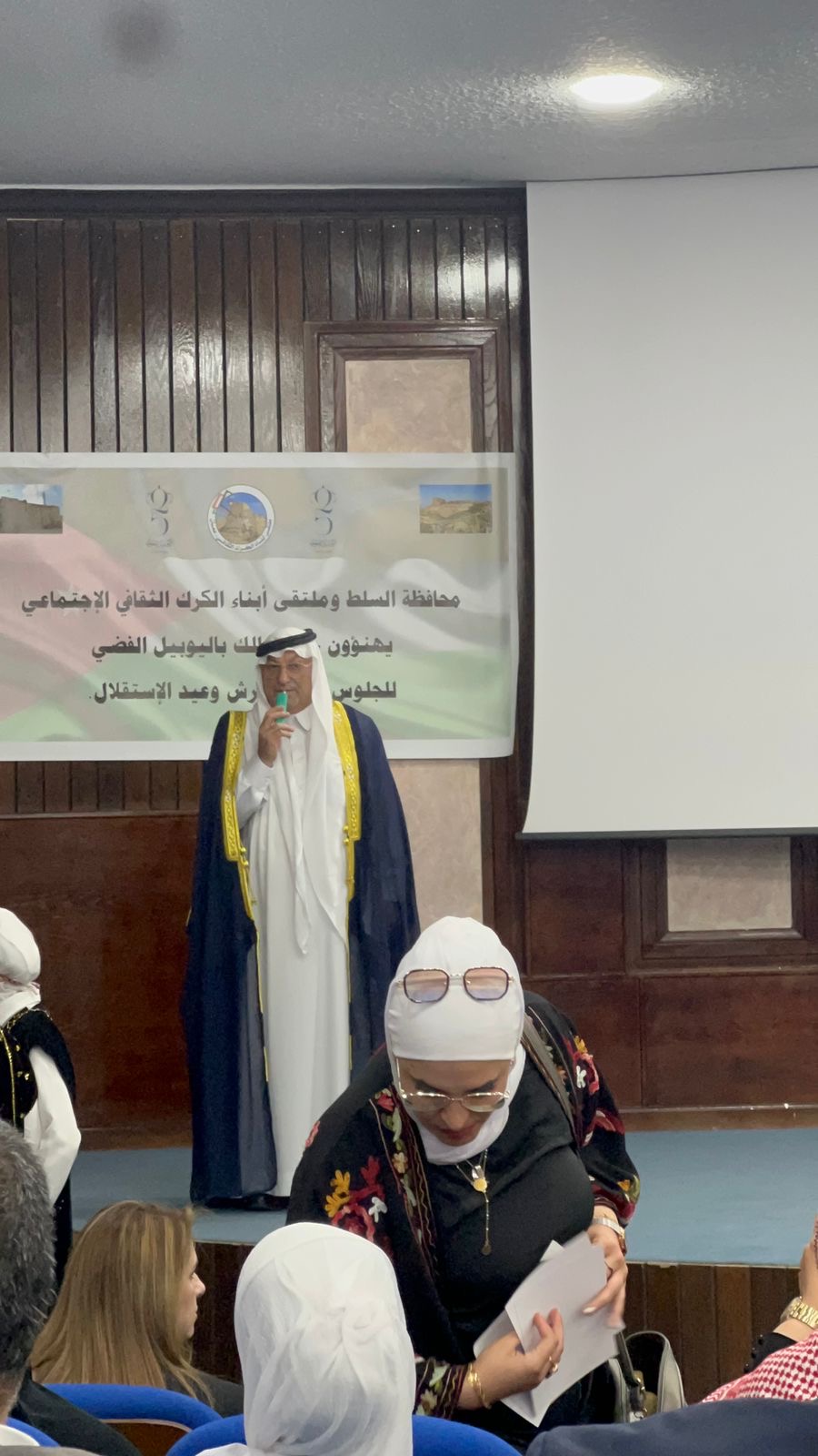 رعى فيصل الفايز رئيس مجلس الأعيان بحضور العين جمال الصرايرة ومحافظ البلقاء فراس ابوقاعود ورئيس ملتقى أبناء الكرك الثقافي العميد المتقاعد هاشم المجالي الاحتفال باليوبيل الفضي للجلوس الملكي على العرش من خلال إعلان التوأمة في التراث السلطي والكركي . وألقى رئيس ملتقى أبناء الكرك كلمة تتحث عن أهمية التراث في تعزيز الولاء والانتماء للوطن والقيادة كما محافظ البلقاء فراس ابوقاعود في كلمته على أهمية العادات والتقاليد والتراث في حياة الشعوب .ثم تم عرض وصلات تراثية وعرض فلكلوري سلطي وكركي ثم اختتم بكلمة من راعي الحفل دولة فيصل الفايز تحدث فيها عن أهمية التراث والتارخ في استحضار الماضي من أجل العمل والبناء للمستقبل .