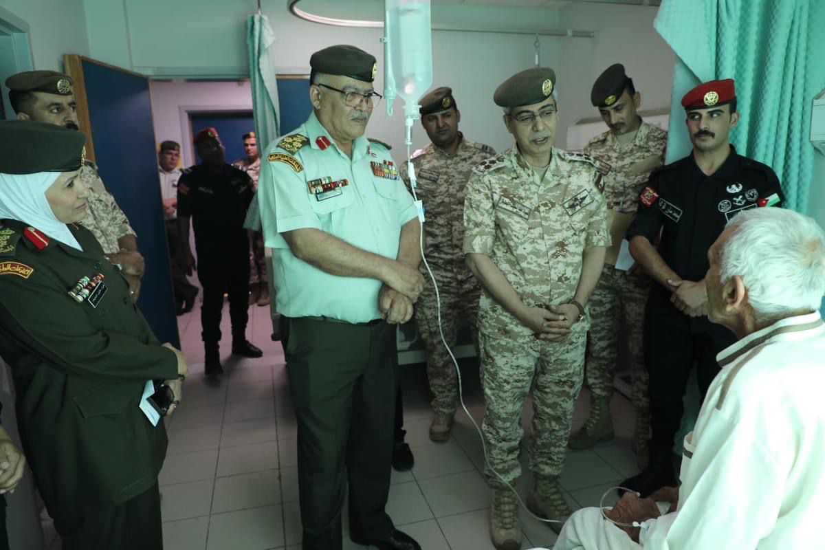 في إطار تواصل القيادة العامة للقوات المسلحة الأردنية ــ الجيش العربي المستمر مع المرضى من العاملين والمتقاعدين لتأمين احتياجاتهم والاطمئنان عليهم، وتفقد مستوى الخدمات الصحية المقدمة لهم في المستشفيات التابعة لمديرية الخدمات الطبية الملكية، عاد عدد من كبار ضباط القوات المسلحة الأردنية ــ الجيش العربي، اليوم الأحد، أول أيام عيد الأضحى المبارك، المرضى في جميع المستشفيات العسكرية بمختلف محافظات المملكة، ونقلوا لهم تهنئة القيادة العامة للقوات المسلحة بمناسبة حلول عيد الأضحى المُبارك وتمنياتها لهم بالشفاء العاجل.
