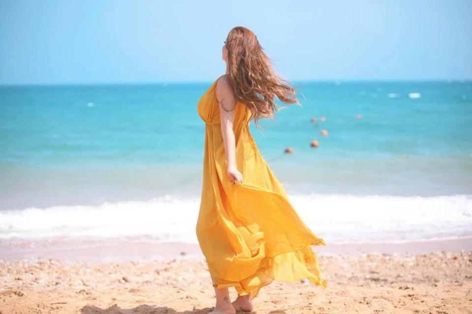 حيث شاركت طافش جمهورها اطلالة بحرية جديدة بثوب أصفر اللون مع تعليق جاء فيه: