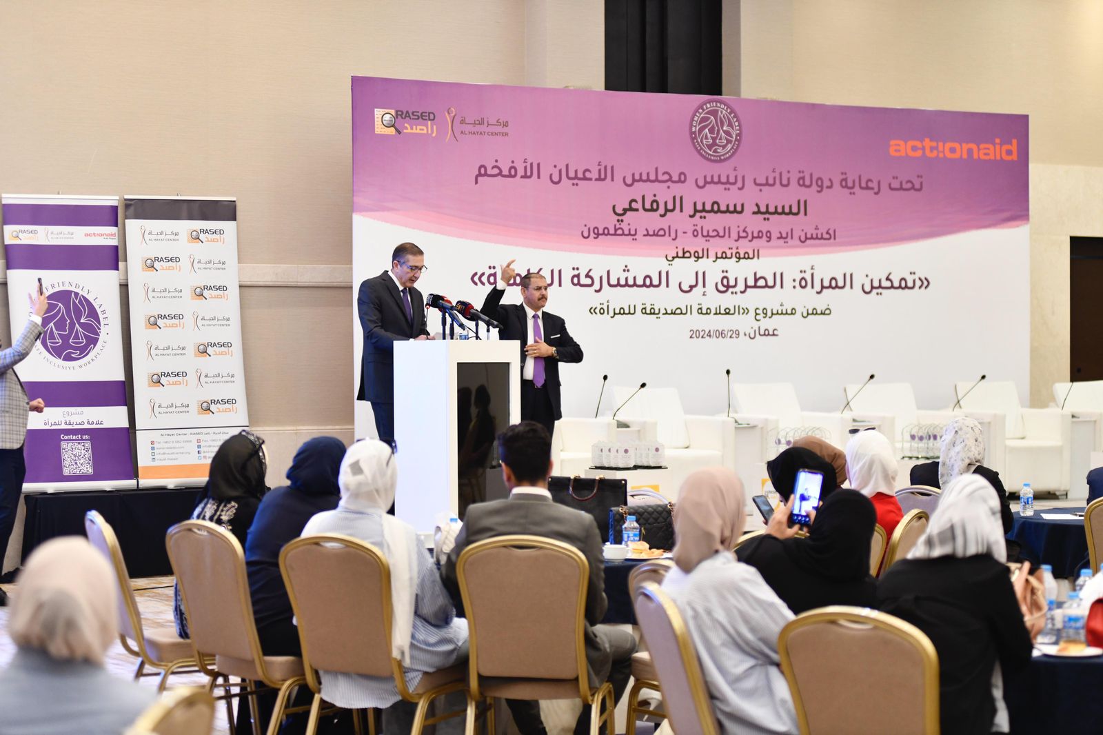 الرفاعي: التمكين الاقتصادي يعزز استقلالية المرأة ويدعم طموحها السياسي. الرفاعي: الرؤى الملكية والإصلاحات السياسية تعزز دور المرأة في الأردن.الرفاعي: النساء المتمكنات اقتصاديًا يقدن التغيير السياسي في الأردن.الرفاعي: النجاح في تحقيق التمكين الشامل للمرأة يتطلب تكاتف جميع الأطراف. الرفاعي: دعم النساء وتمكينهنّ ينّمي المجتمعات ويعزز الإنجاز.قال نائب رئيس مجلس الأعيان دولة السيد سمير الرفاعي أن تمكين المرأة الأردنية ضرورة ليس فقط لأنها أكثر من نصف المجتمع والمسؤولة الأولى عن إعداد وتنشئة النصف الآخر، وليس لأن هذا توجه وطني سبق الأردن فيه كثير من دول العالم، فعلاوةُ على ذلك فإن تمكين المرأة سياسياً واقتصادياً واجتماعياً هو أساس لدفع عجلة التحديث الوطني الشمولي برمتها، جاء ذلك خلال رعايته للمؤتمر الوطني الذي نفذه مركز الحياة راصد وأكشن ايد المنطقة العربية تحت عنوان، "تمكين المرأة: الطريق إلى المشاركة الكاملة" وذلك ضمن مشروع علامة صديقة للمرأة. وأكد الرفاعي أن الأردن كان سباقاً بالاعتراف بحق المرأة في الانتخاب والترشح وتمكين المرأة سياسياً واقتصادياً، ولكننا ما زلنا حتى الآن نتحدث عن التمكين، بالرغم من أن المرأة الأردنية أثبتت قدرتها في المجالات كافة وبغض النظر عن أسباب ما وصلنا إليه يجب أن نعمل لتمكينها كما هو واجبها تمكين ذاتها ونظيراتها من النساء. وبيّن الرفاعي أن الأردن شهد خطوات هامة نحو تعزيز دور المرأة في المجتمع بقيادة جلالة الملك وجهود جلالة الملكة والتي تدفع إلى تحقيق العدالة والمساواة وتمكين المرأة كجزء لا يتجزأ من رؤية الأردن المستقبلية، وأكد الرفاعي على أن الإصلاحات السياسية الأخيرة جاءت لتعكس هذا الالتزام حيث تعديل قوانين الانتخاب والأحزاب وتم تقديم العديد من التوصيات لتحسين تمثيل النساء في المجالس المنتخبة عموماً. وشدد الرفاعي على ضرورة اغتنام التمييز الإيجابي للنساء وإلا أننا سنعود للمربع الأول لنتحدث عن التمكين، ولا بد من التأكيد على أن دور السيدة الأردنية تاريخياً في الاقتصاد والسياسة كبير وغني عن التعريف فنحن لا نخترع العجلة، بل نتعلم من تجاربنا واخطاؤنا. وقال الرفاعي أن التمكين الاقتصادي اليوم للنساء يضمن مشاركة سياسية حرة للمرأة ويعزز من استقلاليتها ويدعم طموحها السياسي، وأنه لا يقتصر تمكينهنّ اقتصادياً على توفير فرص العمل، بل يشمل دعم ريادة الأعمال للنساء وتوفير المناخ الاقتصادي والتشريعي والمجتمعي المناسب، وبيّن الرفاعي أن تشجيع النساء على بدء مشاريعهنّ الخاصة عدا عن تأثيره الكبير على المشاركة السياسية فإنه يساعد المرأة على بناء شبكات دعم تساندها في مسيرتها السياسية والاقتصادية والاجتماعية. وبخصوص العلاقة بين التمكين الاقتصادي والمشاركة السياسية قال الرفاعي أنها علاقة تكاملية والتجارب العالمية أثبتت ذلك، وهو ما انعكس على السياسات العامة إيجابياً، كما أن التعليم والتدريب المهني يلعب دوراً مهماً في هذا السياق فتوفير برامج تعليمية وتدريبية مخصصة للنساء يزيد من فرصهنّ في الحصول على وظائف أفضل والمشاركة بفعالية أكبر، لذا فهنالك ضرورة لتطوير مناهجنا ومنهجيات التدريس لتكون أكثر موائمة بهدف تعزيز دور النساء في سوق العمل. وأكد الرفاعي على ضرورة تعاون القطاع الخاص والعام وتعزيز الشراكة الفاعلة بينهم، خصوصاً في تعزيز التمكين الاقتصادي والسياسي للنساء حيث أن هذ التعاون سيؤدي إلى إنشاء مبادرات وبرامج فعّالة تدعم النساء وتفر لهنّ الفرص اللازمة للنجاح، مؤكداً على ضرورة تكاتف جميع الأطراف في هذا السياق، لا سيما وأننا نؤمن بأن دعم النساء وتمكينهنّ ينمي المجتمعات ويعزز الإنجاز. واختتم الرفاعي حديثه بقوله إن هنالك واجباً كبيراً وحملاً ثقيلاً على النساء أنفسهنّ تجاه انتزاع حقوقهنّ والأهم منه واجبهنّ في تعزيز ودعم وتشجيع غيرهنّ من النساء بدلاً من السماح بمرور سنوات ومؤتمرات واستراتيجيات لنعود مرة أخرى للحديث عن هذا