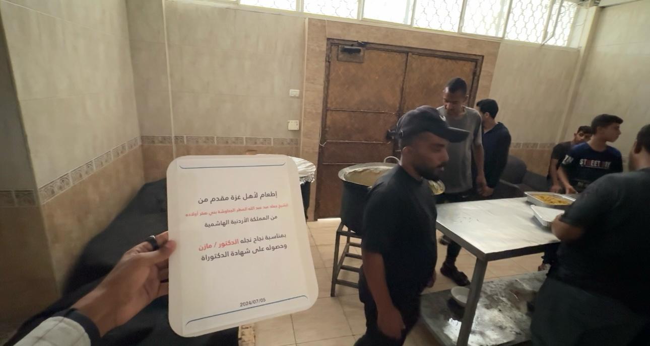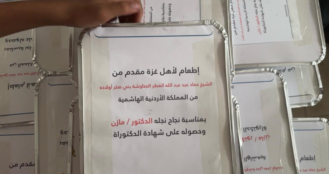 الدكتور فراس الجحاوشة يقيم مأدبة طعام ضخمة لأهالي قطاع غزةاحتفاءا بتخرج شقيقه بدرجة الدكتوراه