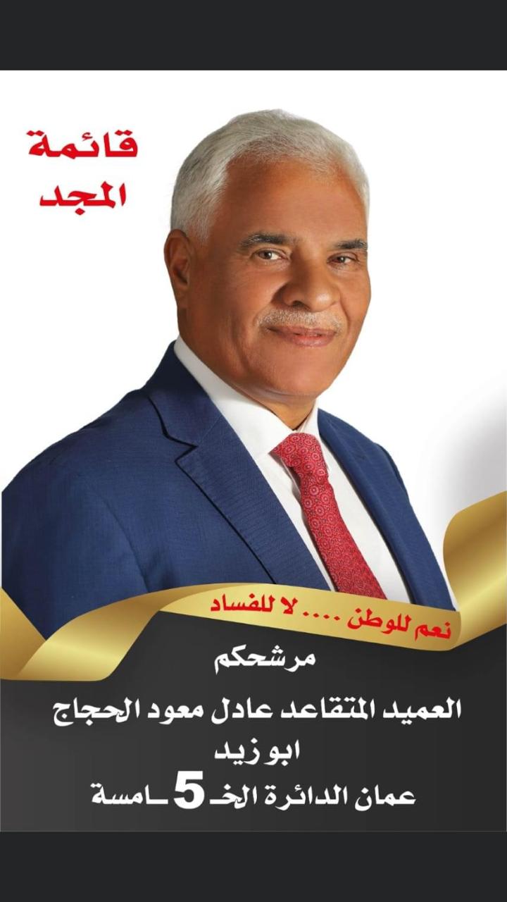 العميد المتقاعد عادل معود الحجاج للانتخابات النيابية عن خامسة عمان