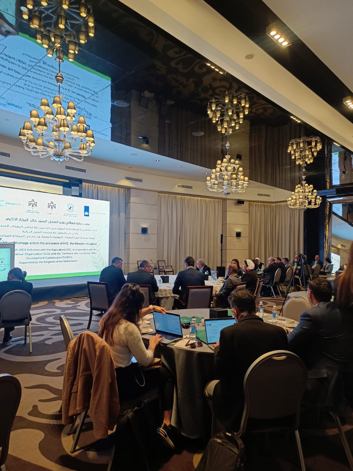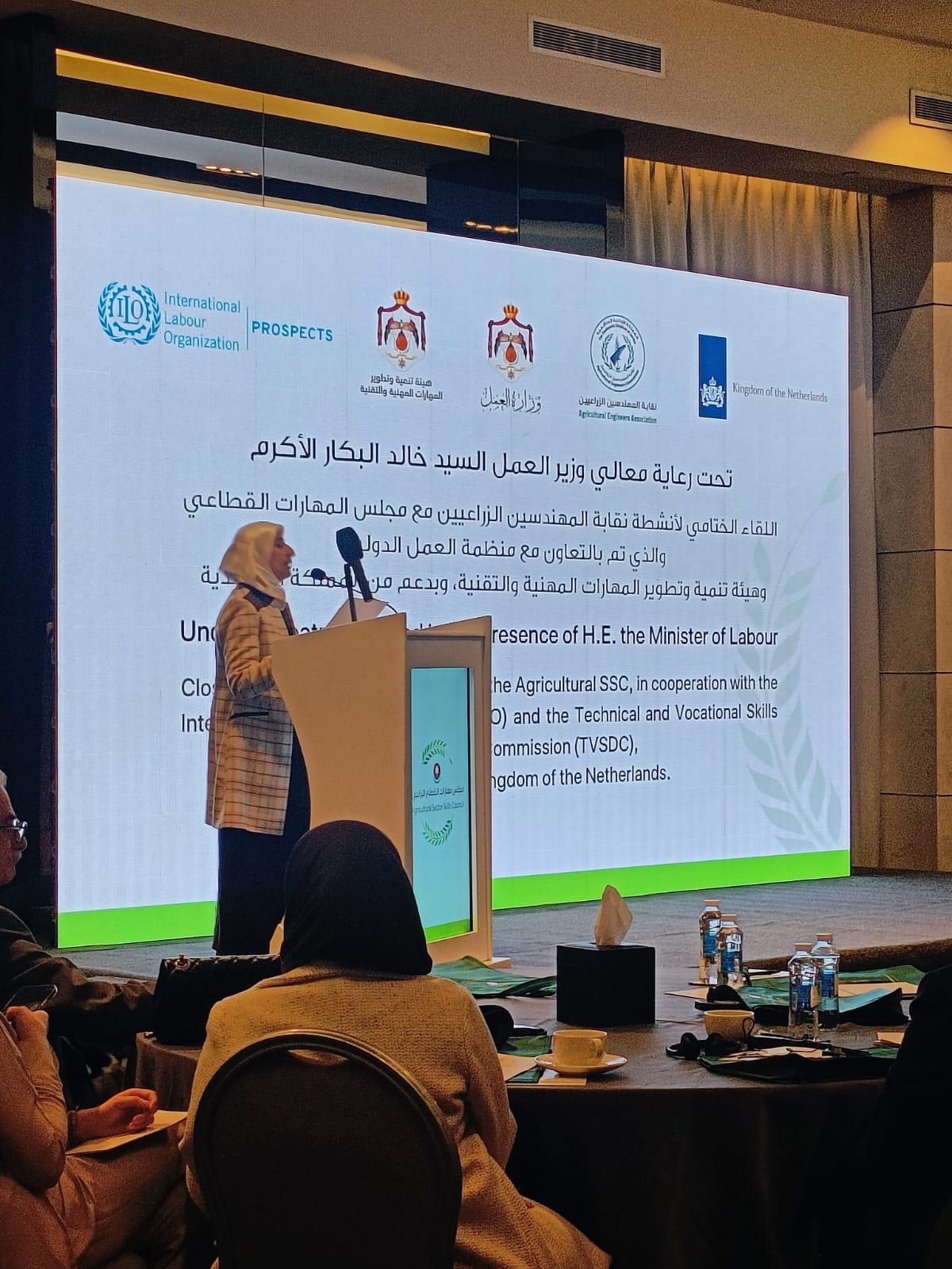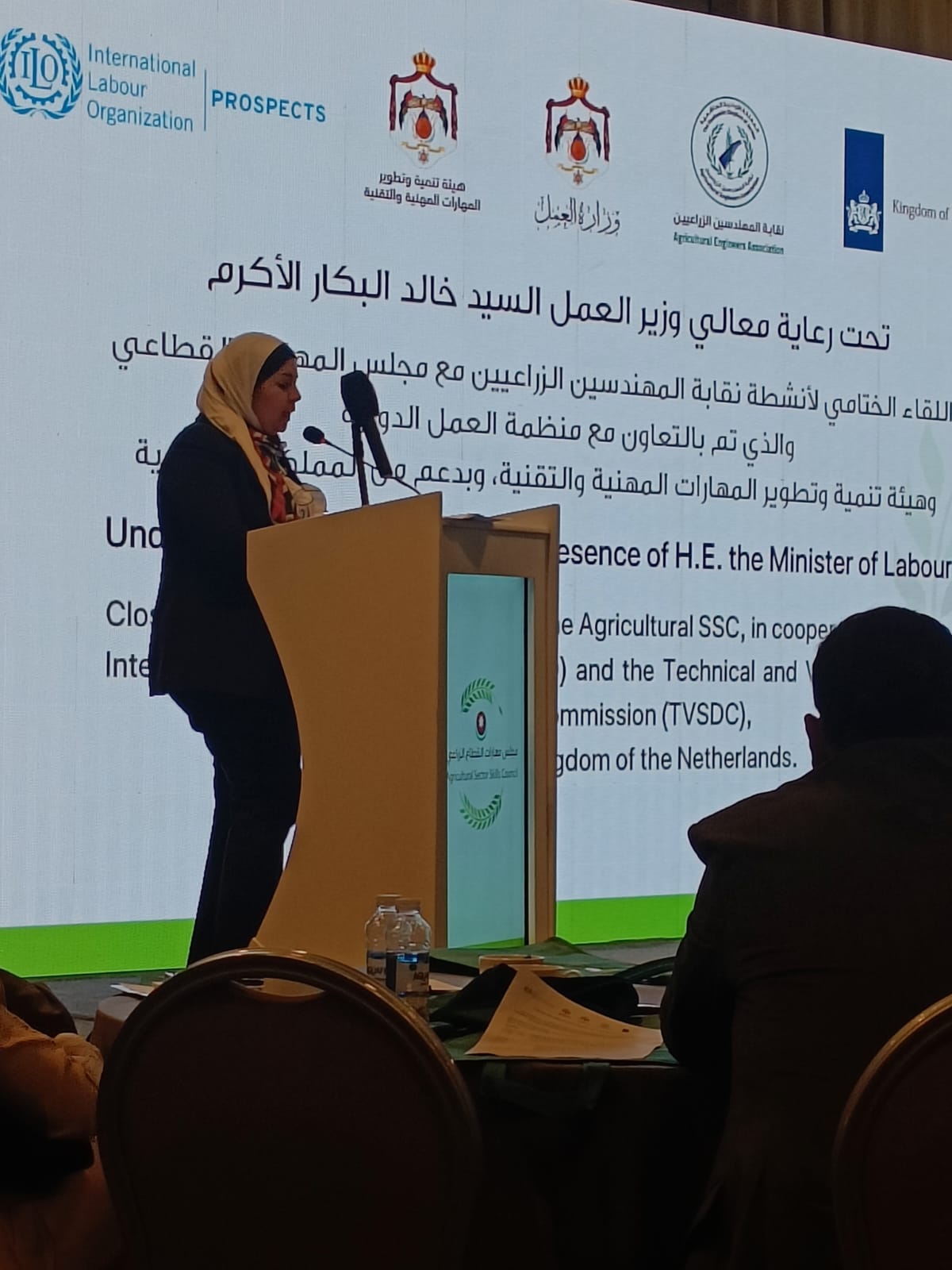 عقدت نقابة المهندسين الزراعيين تحت رعاية وزير العمل خالد البكار في العاصمة الأردنية عمّان بفندق روتانا اللقاء الختامي لمشروع تعزيز قدرات مجلس مهارات القطاع الزراعي بالتعاون مع منظمة العمل الدولية وهيئة تنمية وتطوير المهارات المهنية والتقنية وبدعم من المملكة الهولنديةلتسليط الضوء على الإنجازات الرئيسية التي تحققت خلال فترة المشروع ومناقشة التحديات المستقبلية وسبل استدامة عمل مجالس المهارات القطاعية و قالت رئيسة هيئة تنمية وتطوير المهارات المهنية والتقنية الدكتورة رغدة الفاعوري ، أن الهيئة ماضية في بناء شراكات استراتيجية بهدف تنمية وتطوير مهارات العاملين في القطاع الزراعي.وأضافت الفاعوري خلال رعايتها، اليوم الأحد ، اللقاء الختامي لمشروع (تعزيز قدرات مجلس مهارات القطاع الزراعي) مندوبة عن وزير العمل ، “أننا ومن وحي كتاب التكليف السامي للحكومة، والاهتمام الملكي بالتعليم المهني والتقني والقطاع الزراعي، حرصت الهيئة على تعزيز العمل المشترك مع ممثلي القطاع من خلال هذا المشروع الذي خلص إلى مخرجات مهمة تتمثل في تطوير الكفاءات المهنية الزراعية، وإعداد معايير ومناهج تدريبية تتناسب مع احتياجات السوق”.وأشارت إلى أن الهيئة عملت على تعزيز الهوية البصرية للقطاع الزراعي كجزء من الجهود المبذولة لتحسين جاذبية هذا المجال للعاملين والمستثمرين، وإعداد دراسة لخارطة المهن في القطاع الزراعي، بهدف تحديد المهن الرئيسية والفرعية التي يحتاجها سوق العمل في هذا القطاع، ما يسهم في توجيه البرامج التدريبية نحو تطوير الكوادر المطلوبة .من جهته أكد نقيب المهندسين الزراعيين، رئيس مجلس مهارات القطاع الزراعي المهندس علي أبو نقطة، أن تضافر الجهود مع هيئة تنمية وتطوير المهارات المهنية والتقنية، وباقي الشركاء يجسد التعاون المثمر الذي قادنا إلى نجاح هذه التجربة، وسنسعى إلى تكرارها.وأضاف أن مجلس مهارات القطاع الزراعي أصبح بفضل هذا التعاون انموذجا حيا على نجاح الشراكة الاستراتيجية تحت مظلة وطنية.وقال أبو نقطة إن القطاع الزراعي يجمع بين المهارات التقليدية المتوارثة والتكنولوجيا الحديثة، ويحتاج إلى كوادر مدربة ومؤهلة للتعامل مع هذا التداخل الديناميكي بين التراث الزراعي العريق وأحدث التقنيات.بدورها، أكدت المنسقة القطرية لمنظمة العمل الدولية في الأردن والأخصائية الأولى في سياسات التشغيل الإقليمية الدكتورة أمال موافي، أن القطاع الزراعي يعد حجر الأساس في الاقتصاد الأردني ويسهم في تعزيز الأمن الغذائي والحد من معدلات الفقر والبطالة خاصة في المجتمعات الريفية.وأكدت أن جوهر عمل المنظمة مع الحكومة ضمن القطاع الزراعي ينصب على تحسين فرص العمل في القطاع كماً ونوعاً، وتوفير ضمانات الحماية الاجتماعية والسلامة والصحة المهنية، كما دعمت المنظمة من خلال مشروع آفاق تأسيس مجلس مهارات القطاع الزراعي عام 2019 وستستمر في تقديم الدعم لهذا المجلس بما ينعكس إيجابا على تنمية وتطوير مهارات العاملين في القطاع وزيادة أعداد المشتغلين فيه.