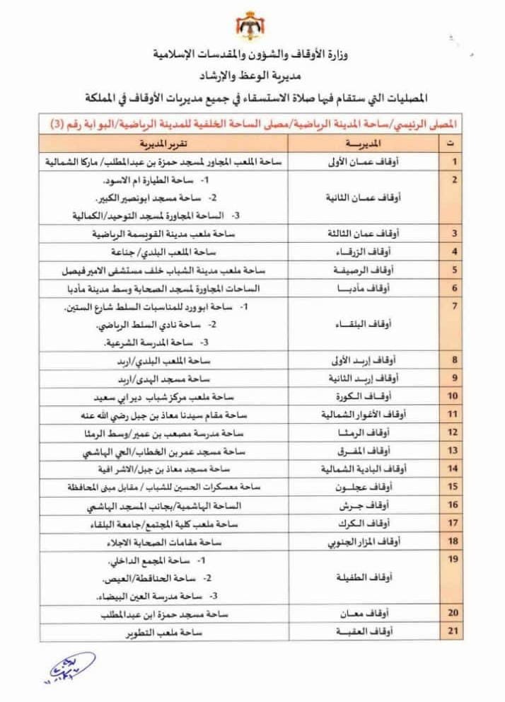 الأردنيون يؤدون صلاة الاستسقاء اليوم (مواقع المصليات)
