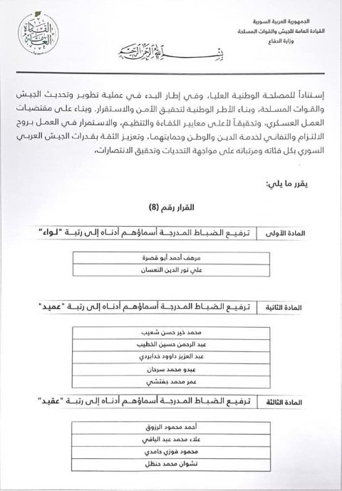 ترفيعات في الجيش السوري تشمل "أبو حسين الأردني