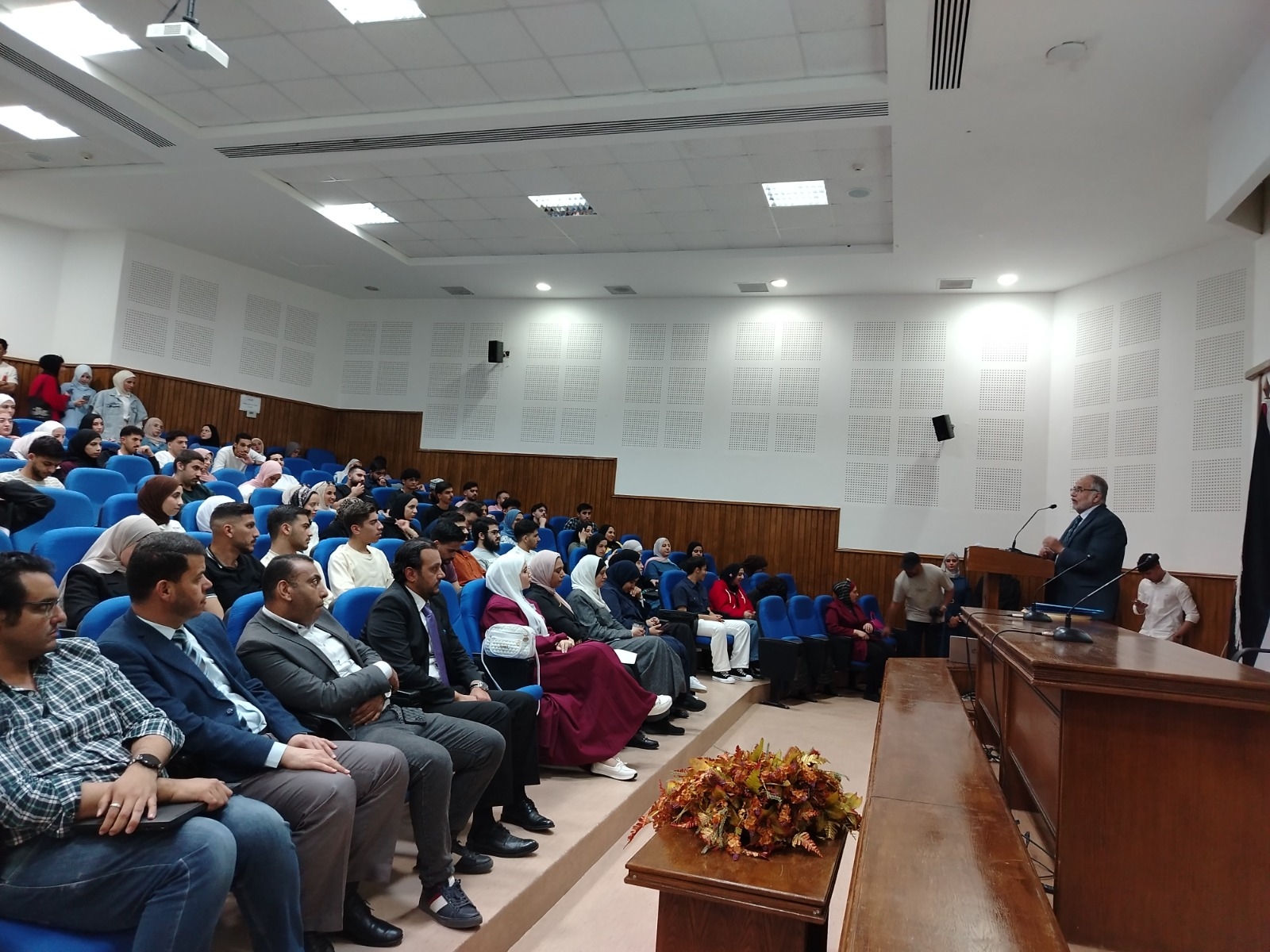 واستُهل اللقاء بتلاوة عطرة من القرآن الكريم، أعقبها كلمة ترحيبية ألقاها عميد الكلية، رحّب فيها بالطلبة الجدد، مقدمًا لهم مجموعة من النصائح والإرشادات في مسيرتهم الجامعية.