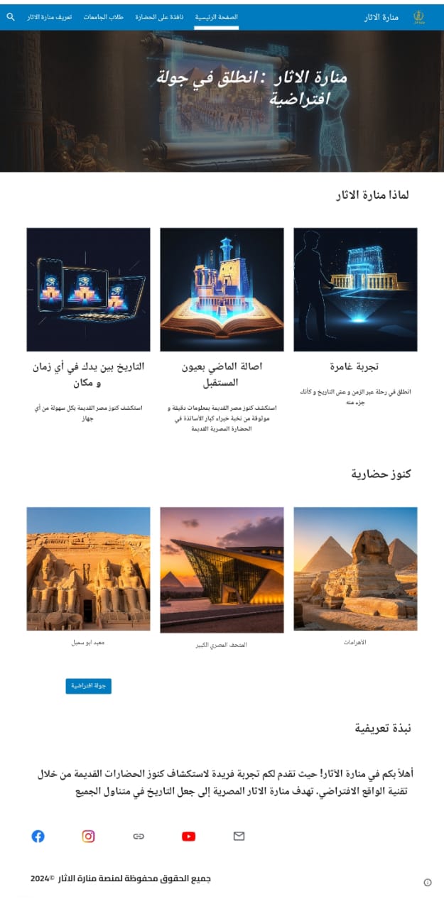 في خطوة مبتكرة تجمع بين التكنولوجيا الحديثة والهوية الثقافية، أطلق مجموعة من طلاب قسم الآثار بكلية الآداب – جامعة بني سويف، مبادرة رائدة بعنوان "منارة الآثار"، تهدف إلى عرض المواقع الأثرية المصرية باستخدام تقنيات الواقع الافتراضي والمعزز، لتكون متاحة للجميع بطريقة تفاعلية وميسّرة.