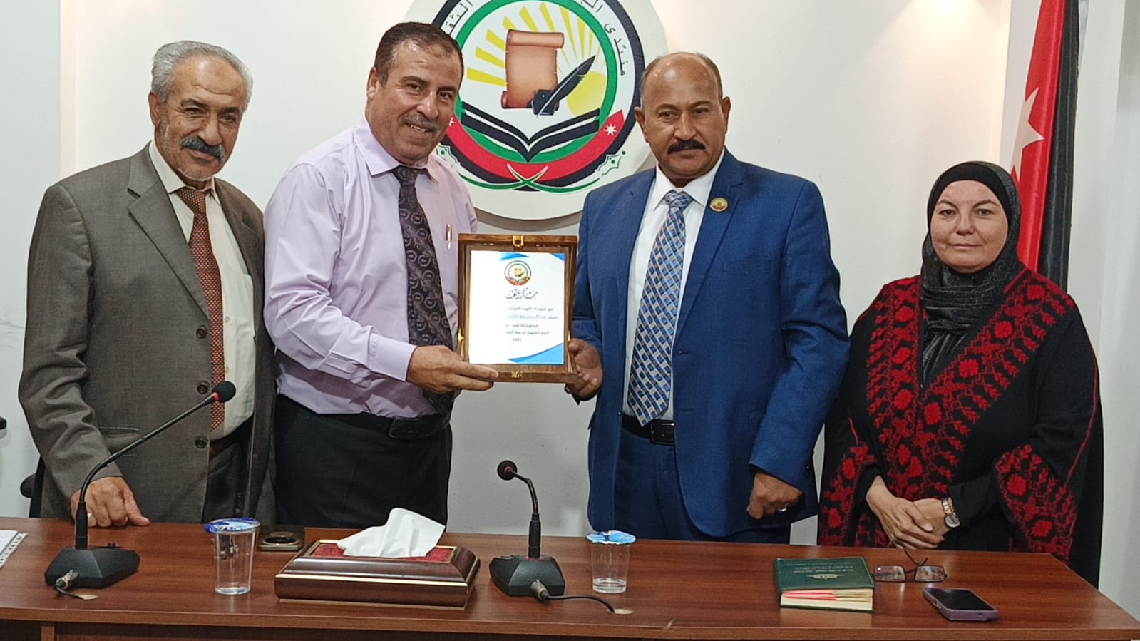 وفي ختام الأمسية، جرى تسليم درع تكريمي باسم منتدى البيت العربي الثقافي ، إلى جانب توزيع شهادات تقديرية على المشاركين من قبل منتدى البيت العربي الثقافي يمثله المهندس صالح الجعافرة ترافقه الأستاذة ميرنا حتقوة، في لفتة تعكس روح الوفاء والتقدير لمسيرة المبدعين.