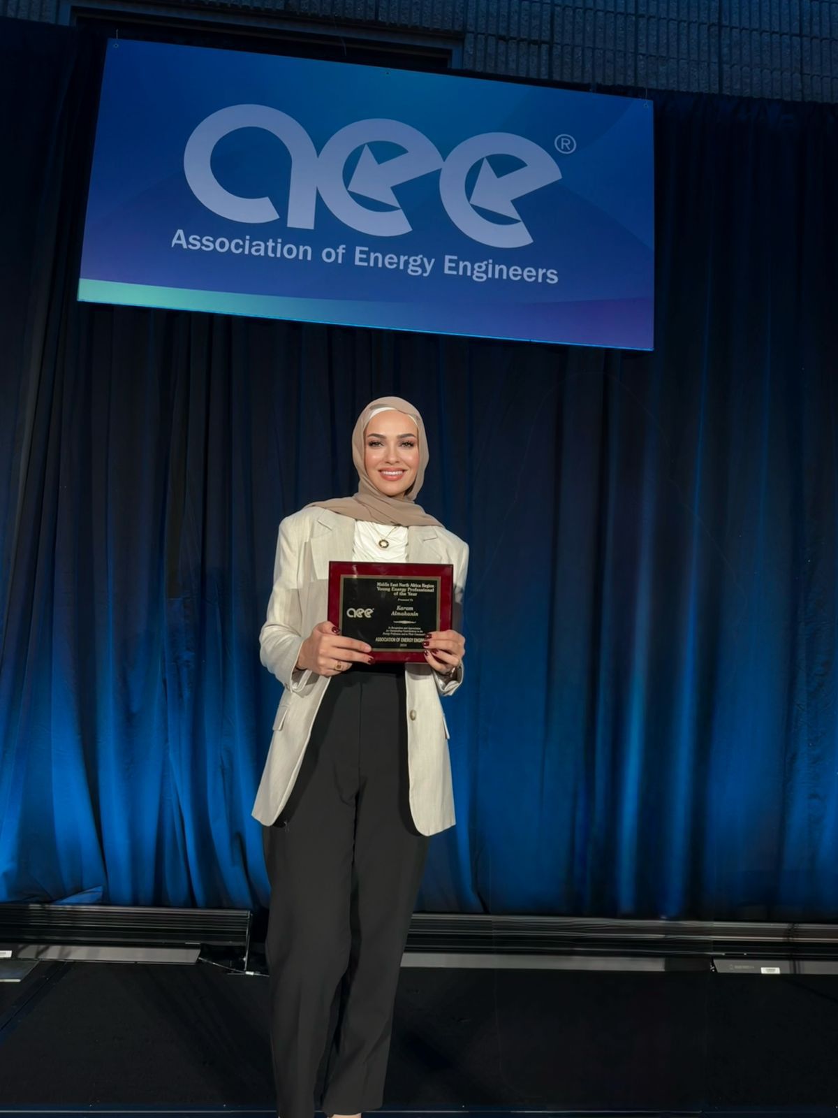 جائزة أفضل مهني شاب في مجال الطاقة (Young Energy Professional Award) للعام 2025، من جمعية مهندسي الطاقة الأميركية (AEE).
