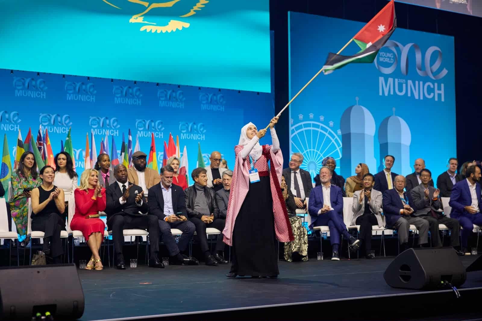 بحضور جلالة الملكة رانيا العبدالله المعظمة التي ألقت كلمة مؤثرة في افتتاح قمة "عالم شاب واحد" One Young World 2025 بمدينة ميونخ الألمانية، شاركت الريادية الأردنية آلاء ثلجي السعودي خريجة الجامعة الهاشمية من كلية الأمير الحسن بن طلال للموارد الطبيعية والبيئة/تخصص إدارة المياه والبيئة، دفعة 2017، في فعاليات القمة ممثلةً عن الأردن، في حدث عالمي جمع أكثر من خمسة آلاف شاب وشابة من 190 دولة.