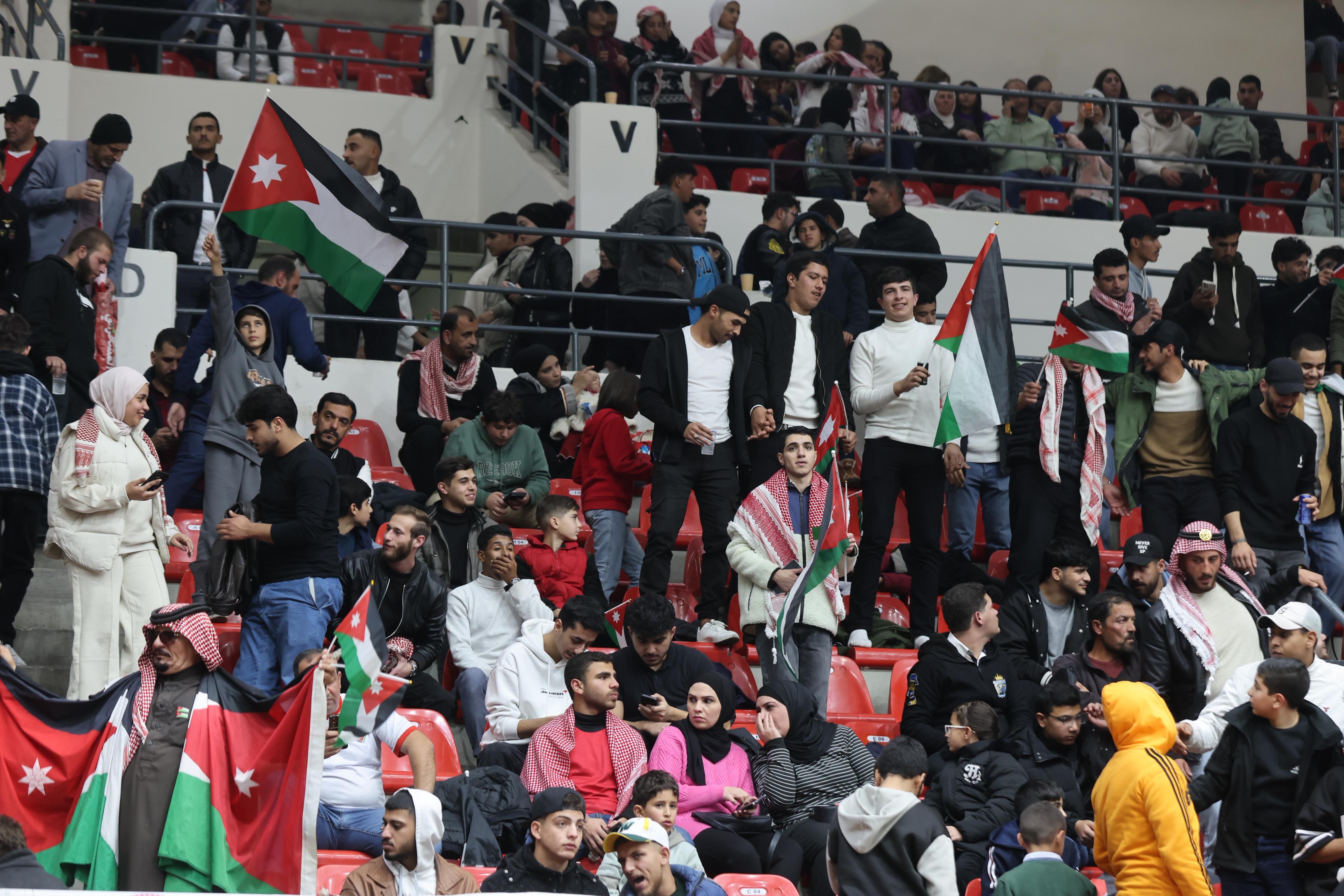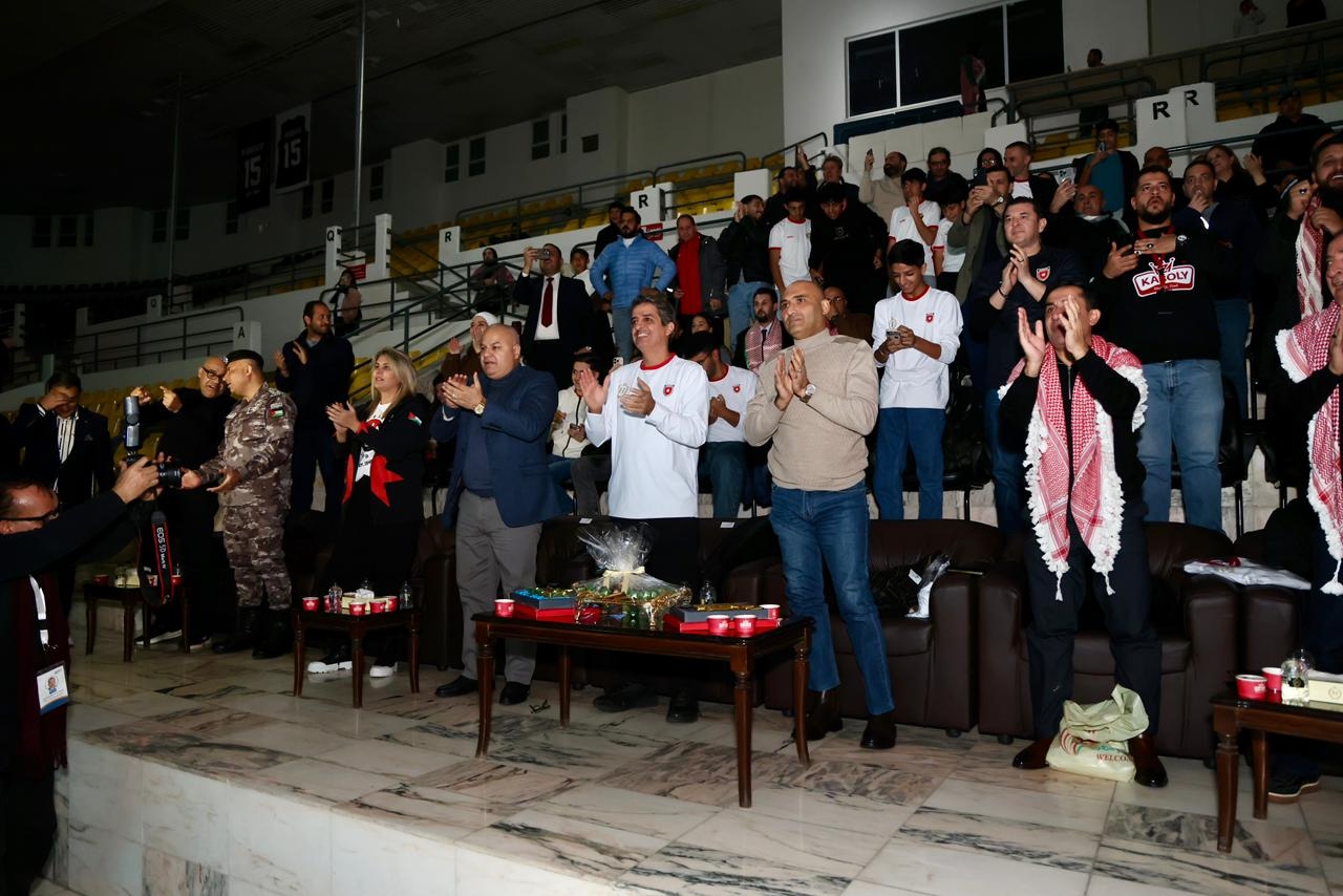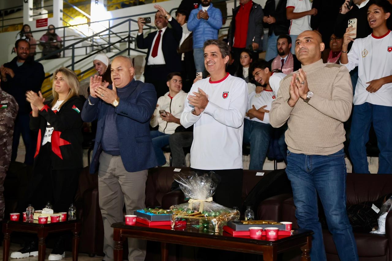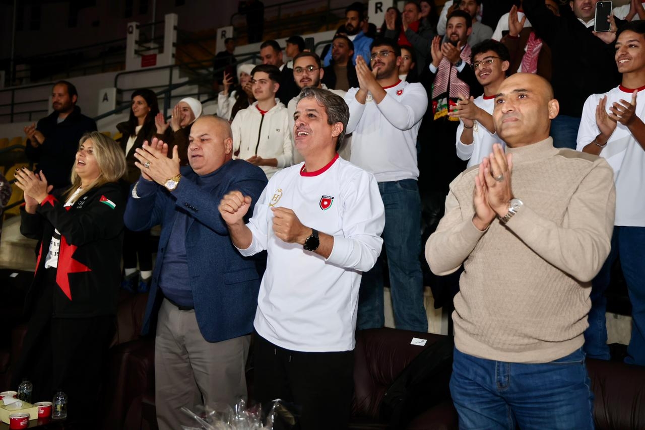 دعم حكومي ونيابي للمنتخب الوطني: د.العدوان، د.البكار، النواب د.المعادات، د.السراحنه ود.عواد، ورنا السعيد يتابعون اللقاء من مدينة الحسين للشباب.