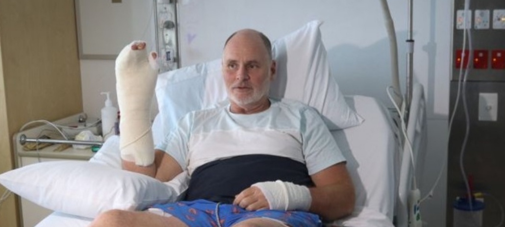 وحرر الرجل البالغ من العمر 44 عاماً نفسه من فكي التمساح عندما وضع يديه في فك التمساح لتحرير رأسه واضطر للسباحة لمسافة طويلة وهو مصاب ليصل إلى الشاطئ خوفاً من أن يلحق به التمساح ويمسك به مجدداً.