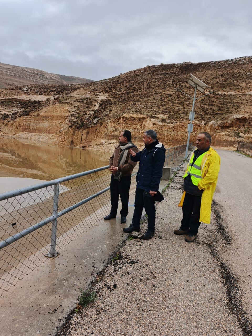 تفقد أمين عام سلطة وادي الأردن المهندس هشام الحيصه اليوم الجمعه 2/1/2026 سد زرقاء ماعين عقب وصوله إلى طاقته الاستيعابية الكاملة البالغة 2 مليون متر مكعب ، للاطلاع على الاجراءات الفنية و السلامة المتخذة. واستمع الحيصه إلى إيجاز من الفرق الفنية حول أعمال المراقبة والصيانة المستمرة لضمان جاهزية السد، مؤكداً على استمرار المتابعة الميدانية وتعزيز إجراءات السلامة العامة .