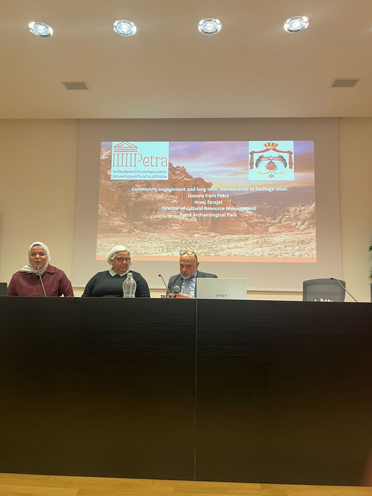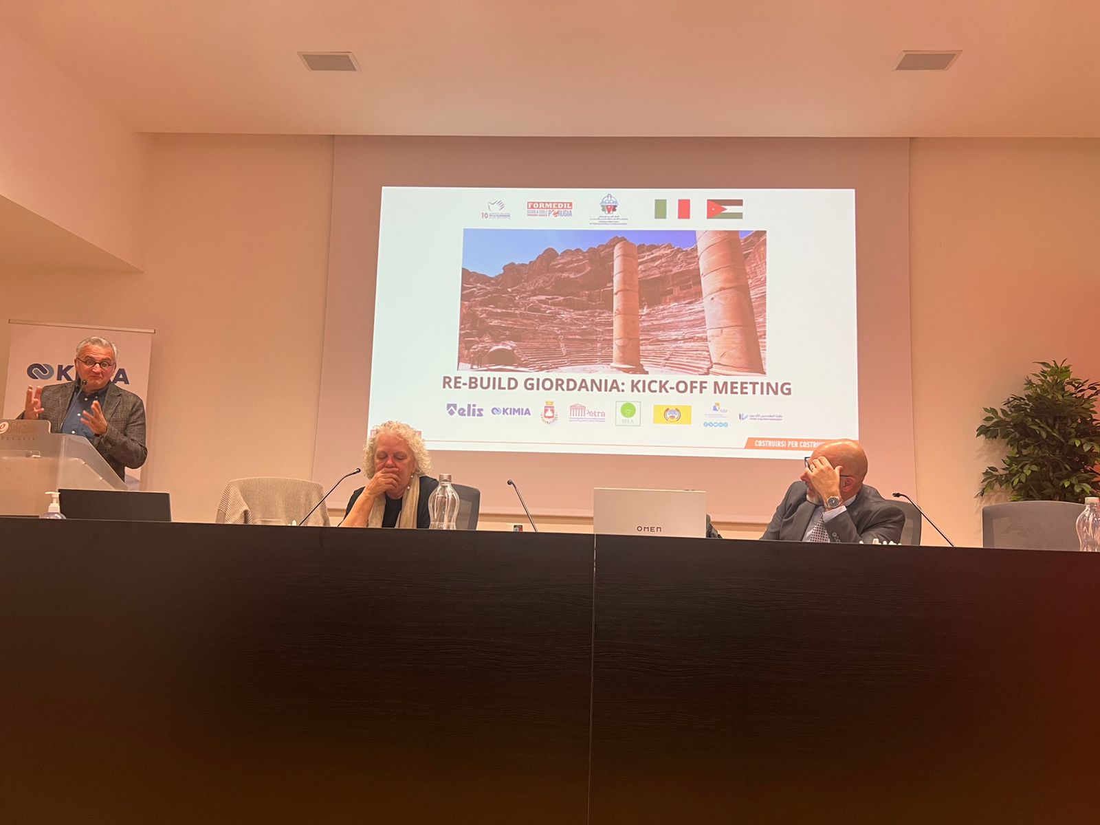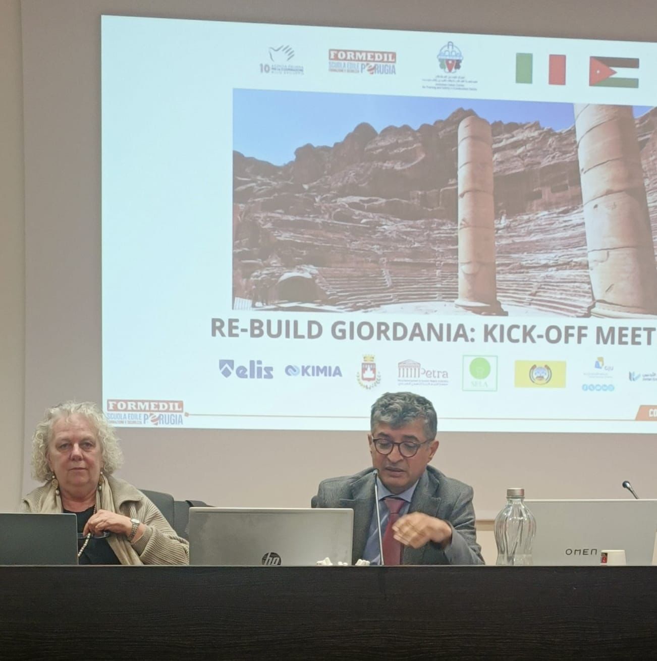 وقد شارك في المؤتمر نخبة من الشركاء الاستراتيجيين من الجانب الأردني ممثلين بنقابة المهندسين والجامعة الألمانية الأردنية وسلطة إقليم البتراء التنموي السياحي وبلدية الكرك فيما مثل الجانب الإيطالي الوكالة الإيطالية للتعاون الإنمائي التابعة لوزارة الخارجية الإيطالية والممول الرئيس للمنحة ومركز البناء الإيطالي وشركة كيميا ومؤسسة إيليس للتوجيه والتدريب المهني حيث رحبت الدكتورة كريستيانا بارتولوتشي مديرة مركز البناء بالوفد الأردني وأكدت على نجاح التجربة القائمة مع المركز الأردني للتأهيل والتدريب مشيرة إلى أنها التجربة الثانية التي أثمرت سابقاً عن ابتعاث 32 مهندساً أردنياً وتأهيلهم كمدربين في السلامة العامة بينما تقام حالياً دورة مكثفة لـ 10 مهندسين من منطقتي البتراء والكرك ليصبحوا مدربين متخصصين في مجال ترميم الآثار