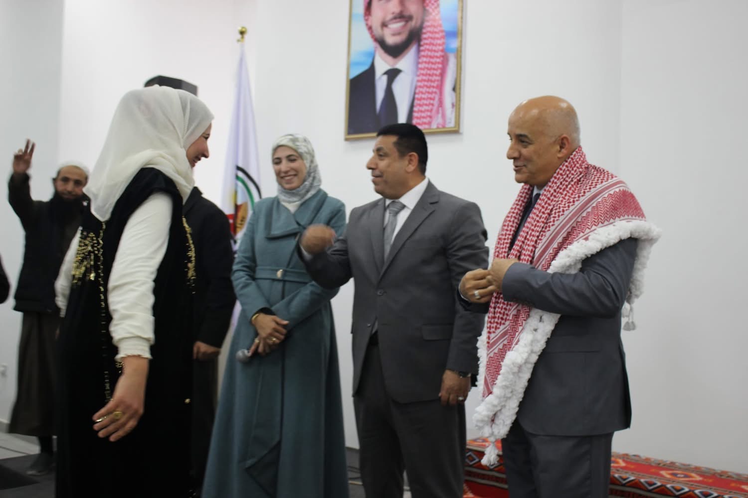 وفي مشهد يجسد الأصالة والهوية الوطنية، قدّمت السيدة كاملة الحباشنة شماغاً أردنيًا مهدّباً لراعي الحفل معالي الدكتور مهند المبيضين، في لفتة رمزية تعبّر عن قيم الاحترام والاعتزاز بالقيادة والرعاية الكريمة لهذا المحفل الوطني.