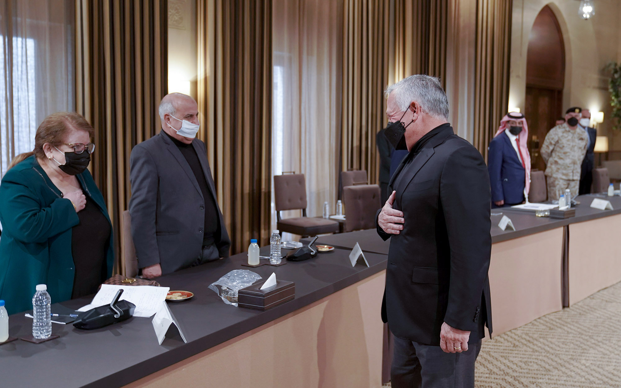 وحضر اللقاء رئيس الديوان الملكي الهاشمي، وعدد من مستشاري جلالة الملك، ورئيس هيئة الأركان المشتركة.