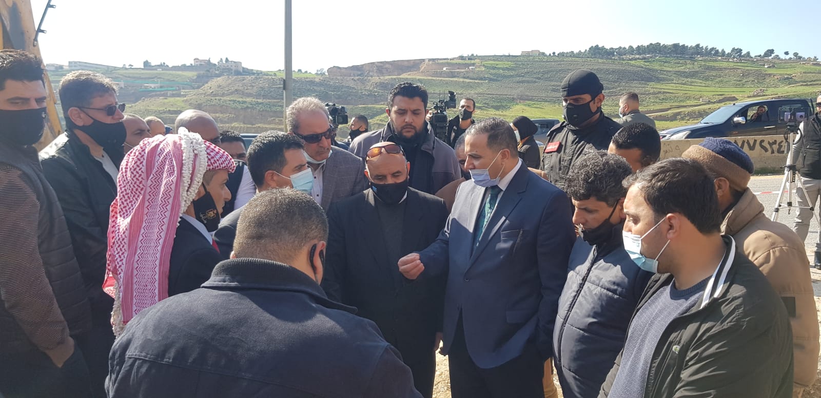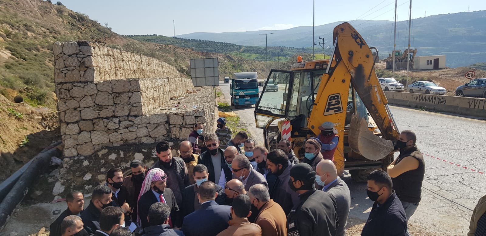 واطلع الوزير ومرافقيه على الإجراءات المنفذة وعمليات نقل الخط خلال أيام معدودة الى الجانب الاخر من الطريق الرئيسي من قبل احد المقاولين العاملين مع سلطة المياه والمسافة (٣٠٠) متر لضمان عدم توقف الخط وتوقف الضخ عن مناطق محافظة جرش مستقبلا وضمان انتظام ادوار المياه وكذلك اتاحة الفرصة امام كوادر الاشغال العامة لاجراء الصيانة اللازمة للطريق ومنطقة الانهيار على الجانب الاخر من الطريق مشددا على ضرورة التأكد من سلامة جميع الخطوط الناقلة والرئيسية في مواجهة كافة الظروف الجوية واستمرار الضخ للمناطق في جميع المناطق .