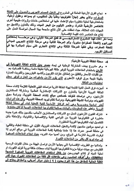 وعن تطوير الموارد البشرية، بين ابتعاث 151 طالب من مختلف التخصصات المطلوبة حيث تحملت الهيئة نفقات معيشتهم فقط، فيما تكفلت الدول التي ابتعث الطلبة إليها برسوم الدراسة الجامعية، إضافة إلى ابتعاث عدد من طلبة البادية الوسطى إلى جامعة العلوم والتكنولوجيا على نفقتها، مشيرا إلى انهاء عديدهم للدراسة والتحاقهم للعمل في الهيئة، ولفت إلى أن عدد العاملين في مشاريع البرنامج النووي الأردني في الهيئة بحدود 300 موظف.