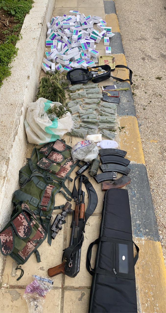 وتابع الناطق الاعلامي انه جرى ضبط شخص آخر كان برفقته اضافة الى سلاح ناري اوتوماتيكي وكمية من الذخيرة و10 الاف حبة مخدرة وعدد من اشتال الماريجوانا وأكياس تحوي ذات المادة معدة للبيع وكميات اخرى من المواد المخدرة المتفرقة وبوشرت التحقيقات.
